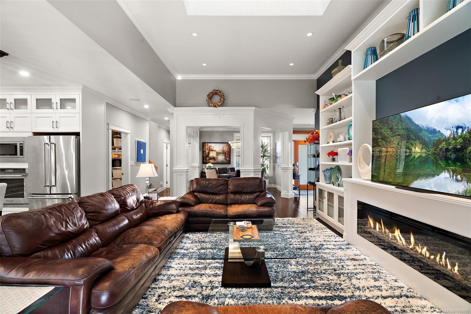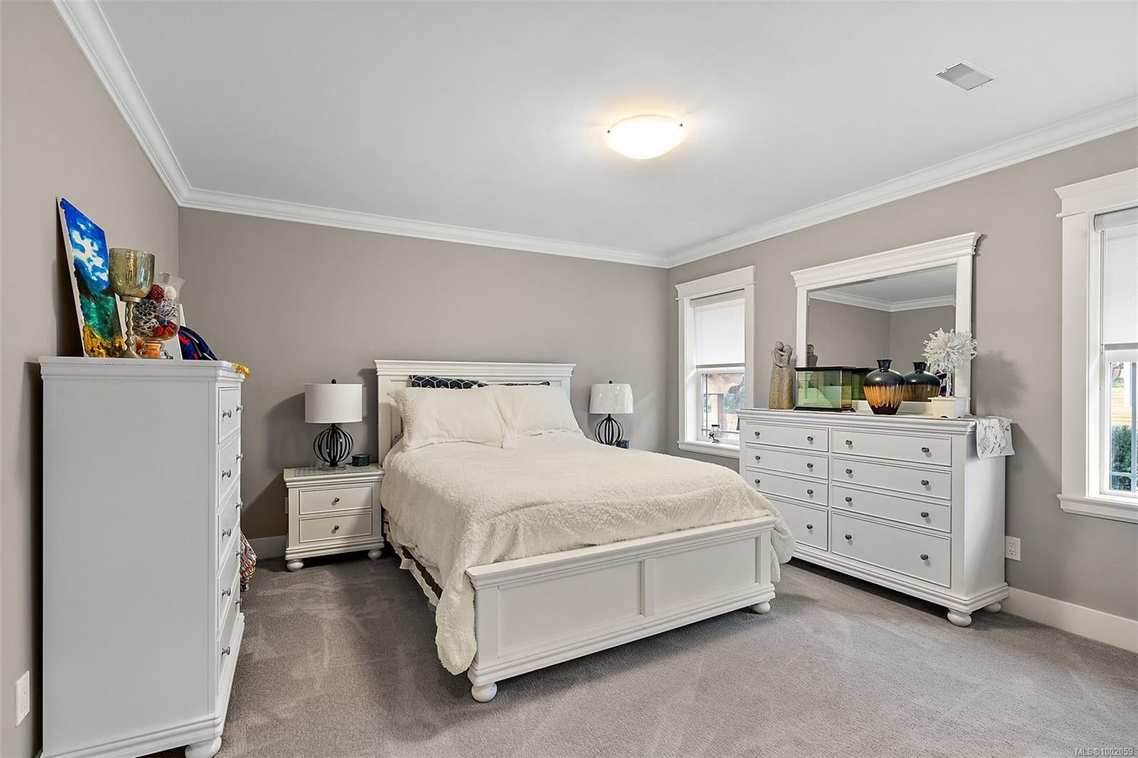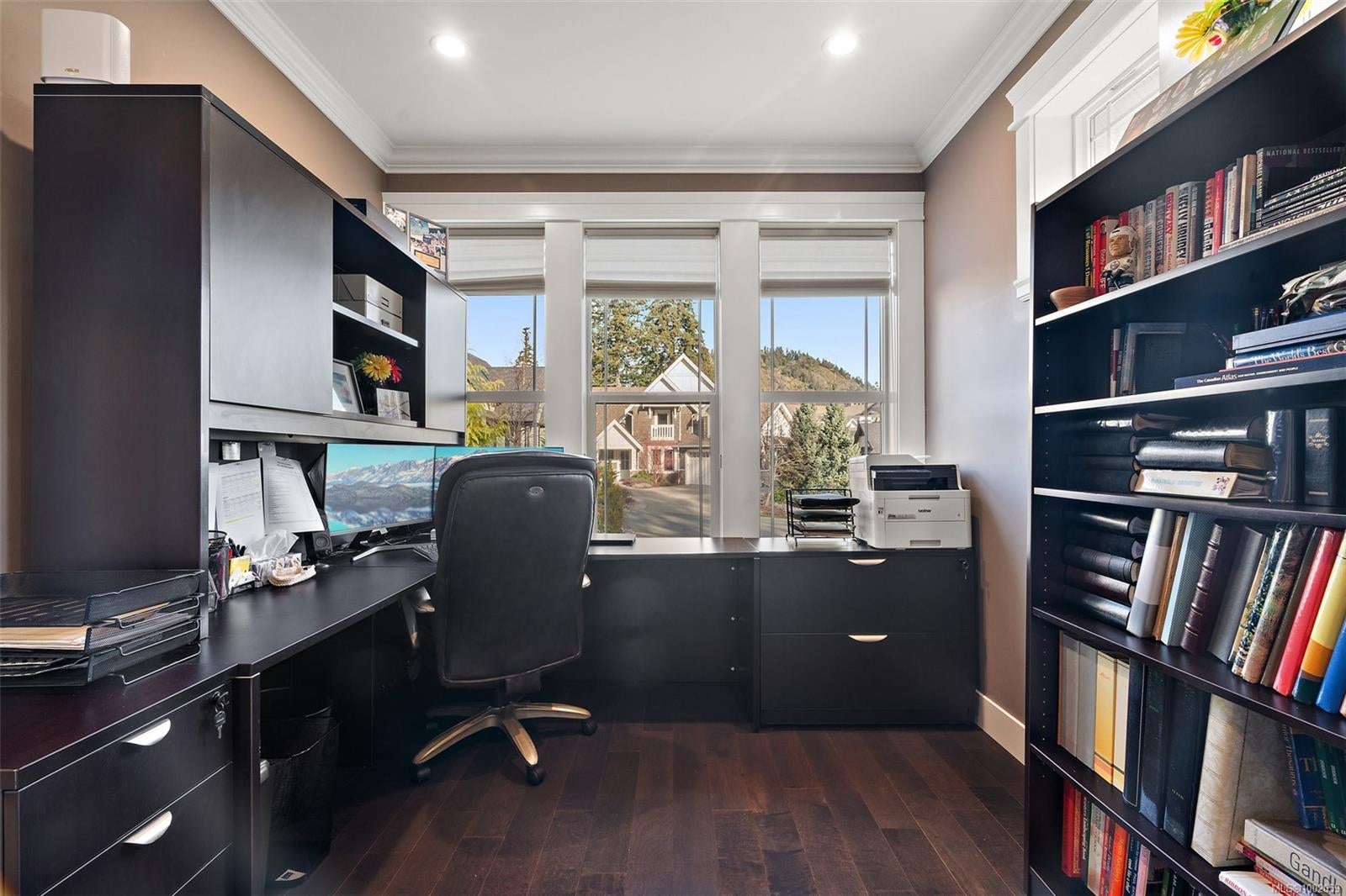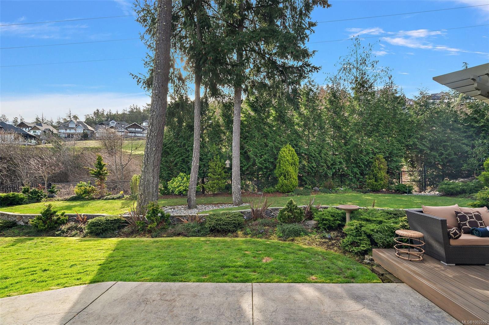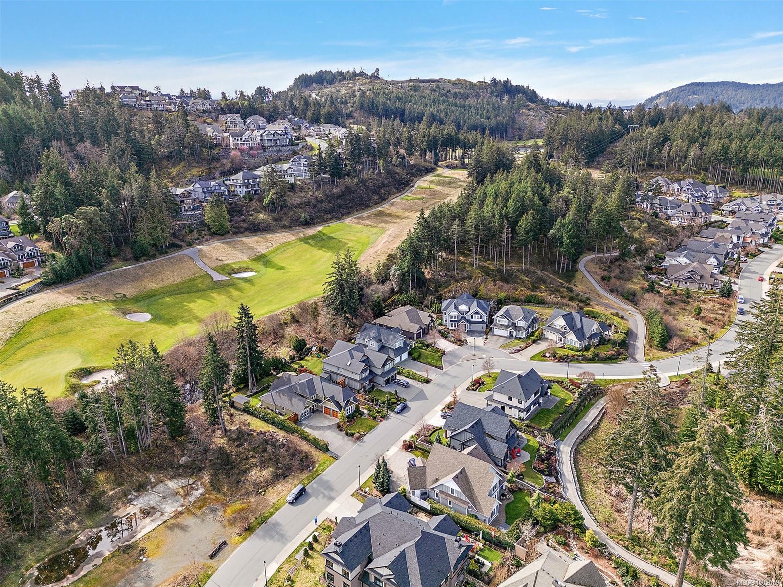 Nestled in the heart of the Bear Mountain resort community, this exceptional 5-bedroom, 3-bathroom executive-style home offers luxury living positioned a stone's throw from the village with your own golf membership. The main level boasts a seamless open-concept layout featuring a chef’s kitchen with premium stainless-steel appliances, oversized island, open living room with built in surround system & sunlit eating nook overlooking the south-facing backyard & prestigious Bear Mountain Golf Course. No-step entry leads to a formal dining space, a private office, spacious primary suite with direct garden access, spa-like ensuite, & a generous walk-in closet. Upstairs, 3 additional bedrooms & 4 piece bath accompany your 13x21 ultimate media room. Thoughtful extras include in-floor water-based radiant heating on the main level, outdoor "she-shed", redesigned laundry room, built-ins & shelving throughout for functionality, fresh landscaping with irrigation system, and fencing to name a few!