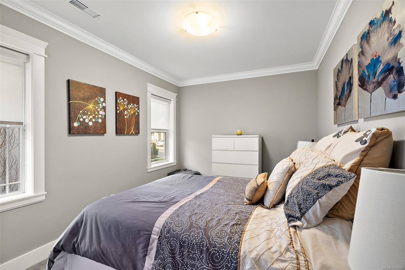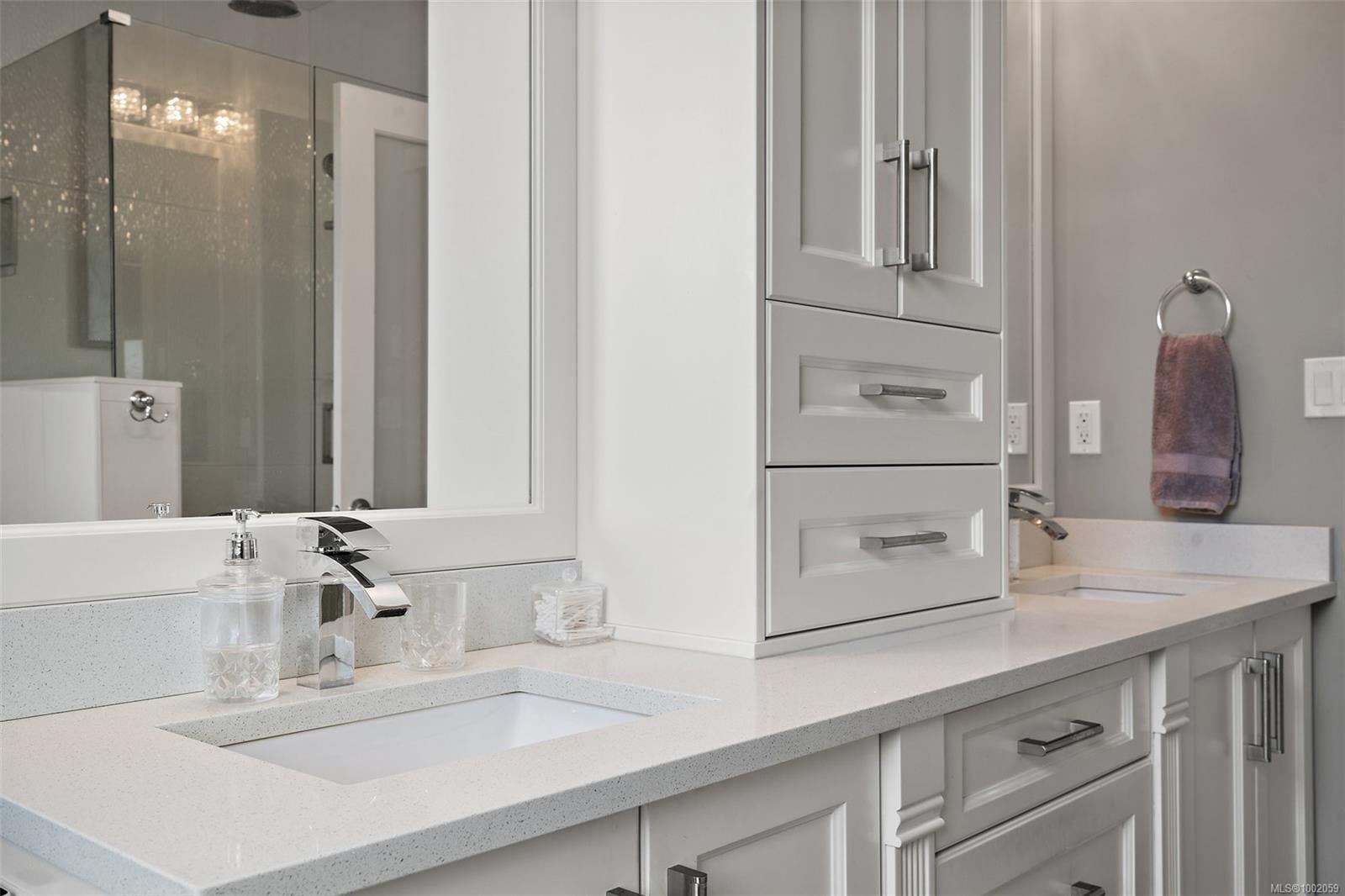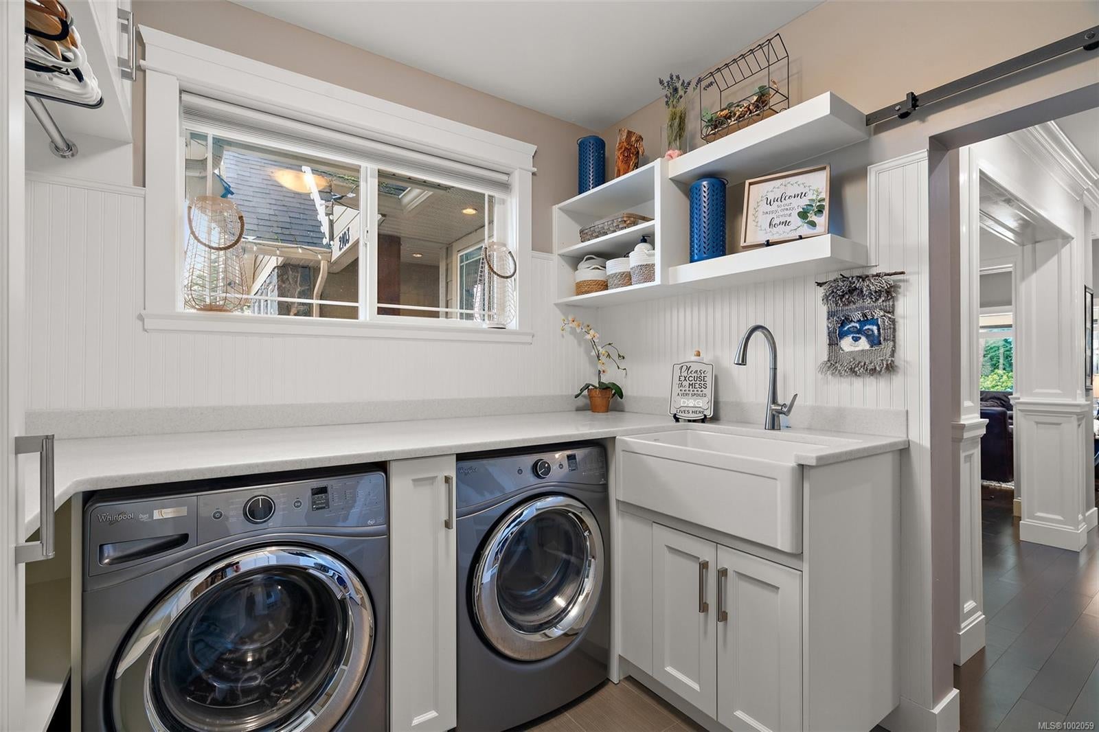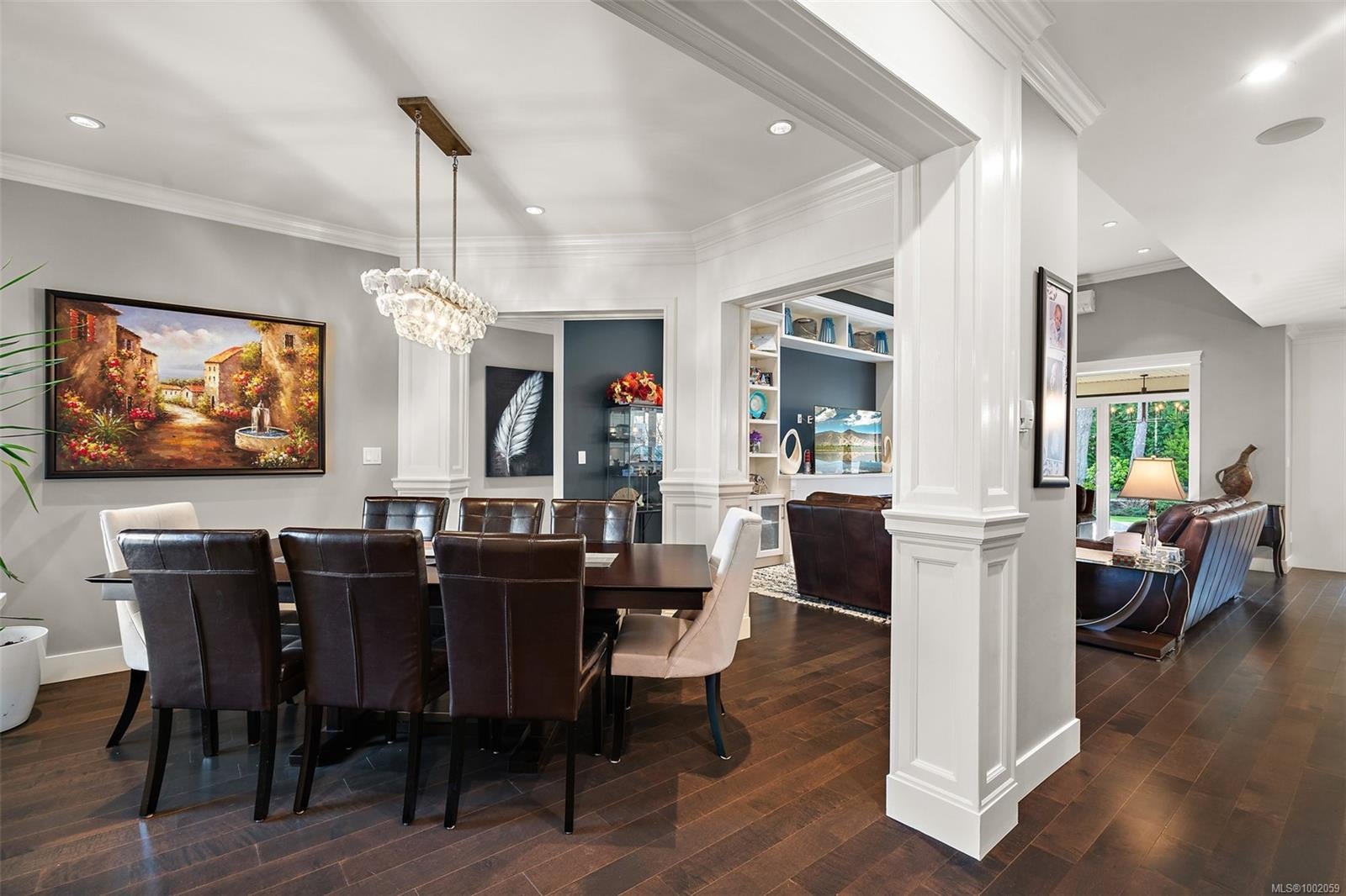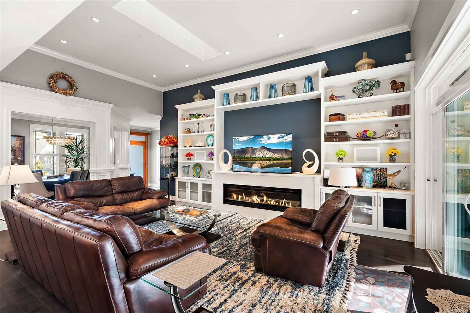 Nestled in the heart of the Bear Mountain resort community, this exceptional 5-bedroom, 3-bathroom executive-style home offers luxury living positioned a stone's throw from the village with your own golf membership. The main level boasts a seamless open-concept layout featuring a chef’s kitchen with premium stainless-steel appliances, oversized island, open living room with built in surround system & sunlit eating nook overlooking the south-facing backyard & prestigious Bear Mountain Golf Course. No-step entry leads to a formal dining space, a private office, spacious primary suite with direct garden access, spa-like ensuite, & a generous walk-in closet. Upstairs, 3 additional bedrooms & 4 piece bath accompany your 13x21 ultimate media room. Thoughtful extras include in-floor water-based radiant heating on the main level, outdoor "she-shed", redesigned laundry room, built-ins & shelving throughout for functionality, fresh landscaping with irrigation system, and fencing to name a few!