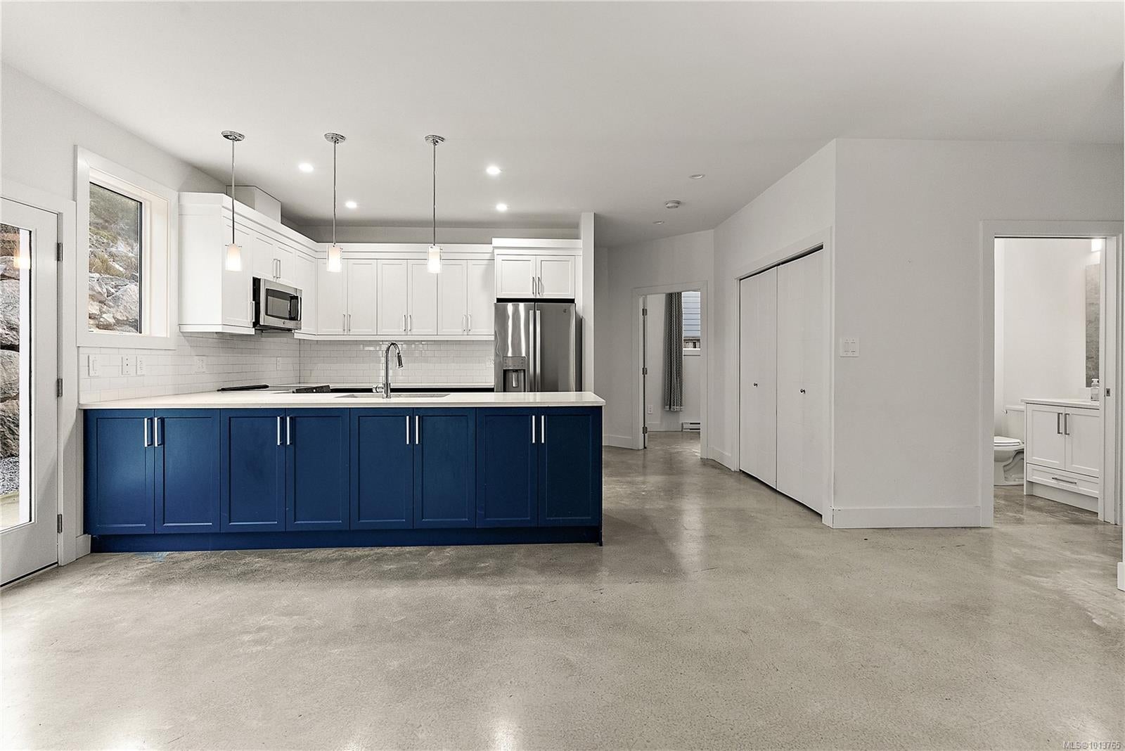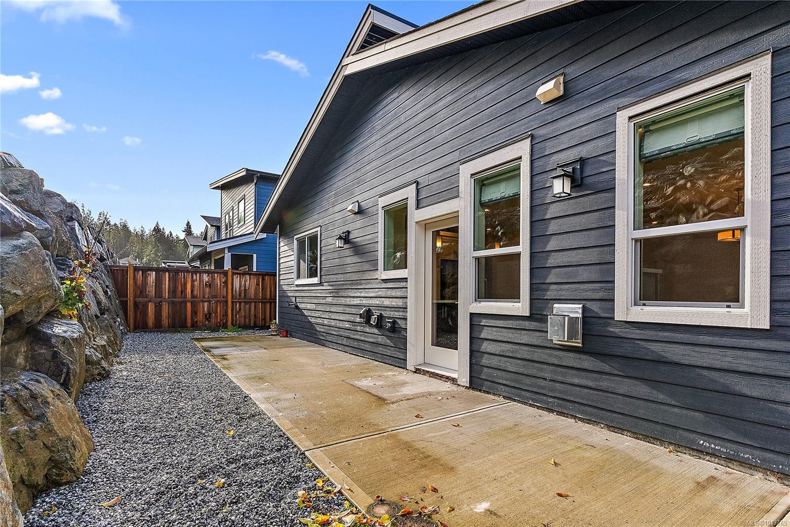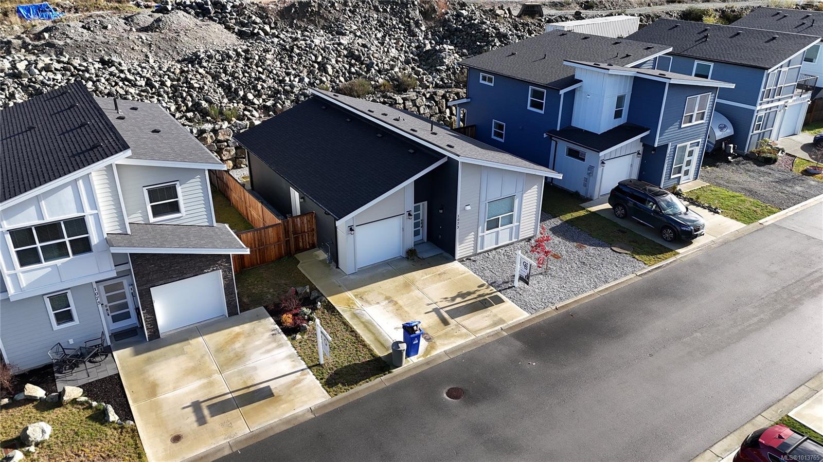 Introducing a stunning nearly new rancher for sale in the coveted Shawnigan Heights neighborhood. This modern home boasts a garage and double width driveway, offering ample parking and storage space. Enjoy the ease of single-level living and a thoughtfully designed layout that maximizes comfort and functionality. With high-quality finishes throughout, including quartz counters, stainless appliances, soft close cabinets and polished concrete floors, this home exudes contemporary elegance. You will love the open concept, no step living with soaring high ceilings and natural gas fireplace. Complete with 2 large bedrooms, 2 full bathrooms and a spacious den/office. Enjoy the benefits of having a new home warranty without paying the GST! Located in a sought-after area, residents can enjoy the tranquility of suburban living while being just 15 mins to amenities, schools, parks, and more. Don't miss the opportunity to own this exceptional property.