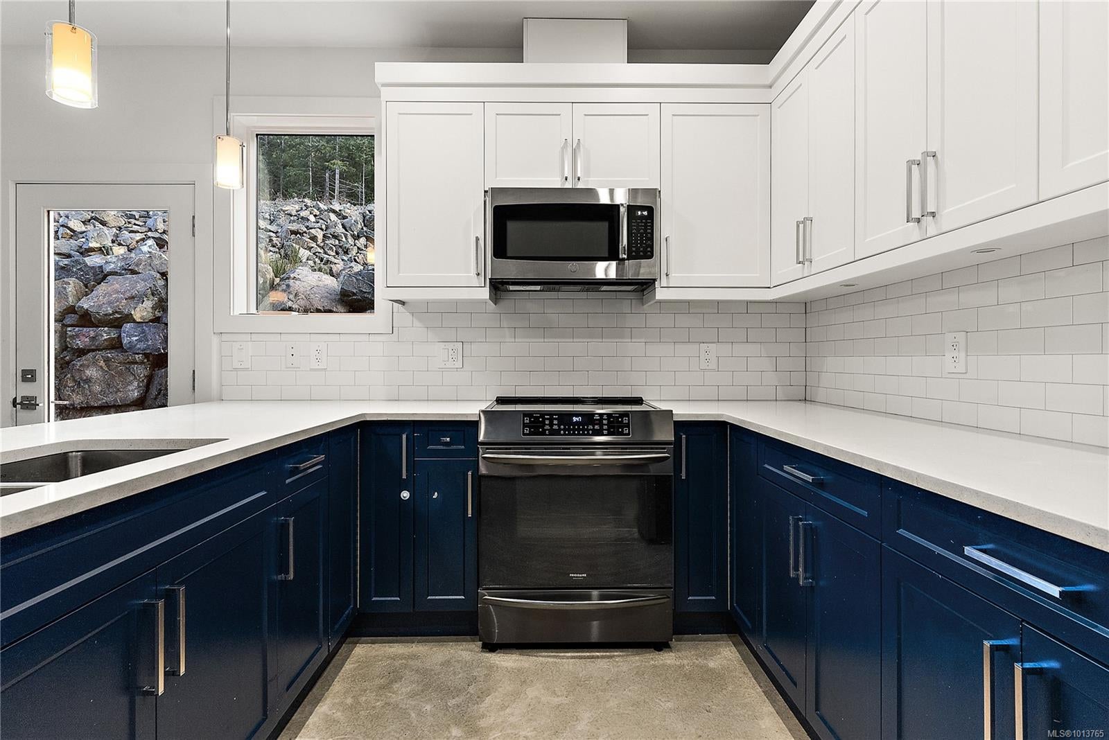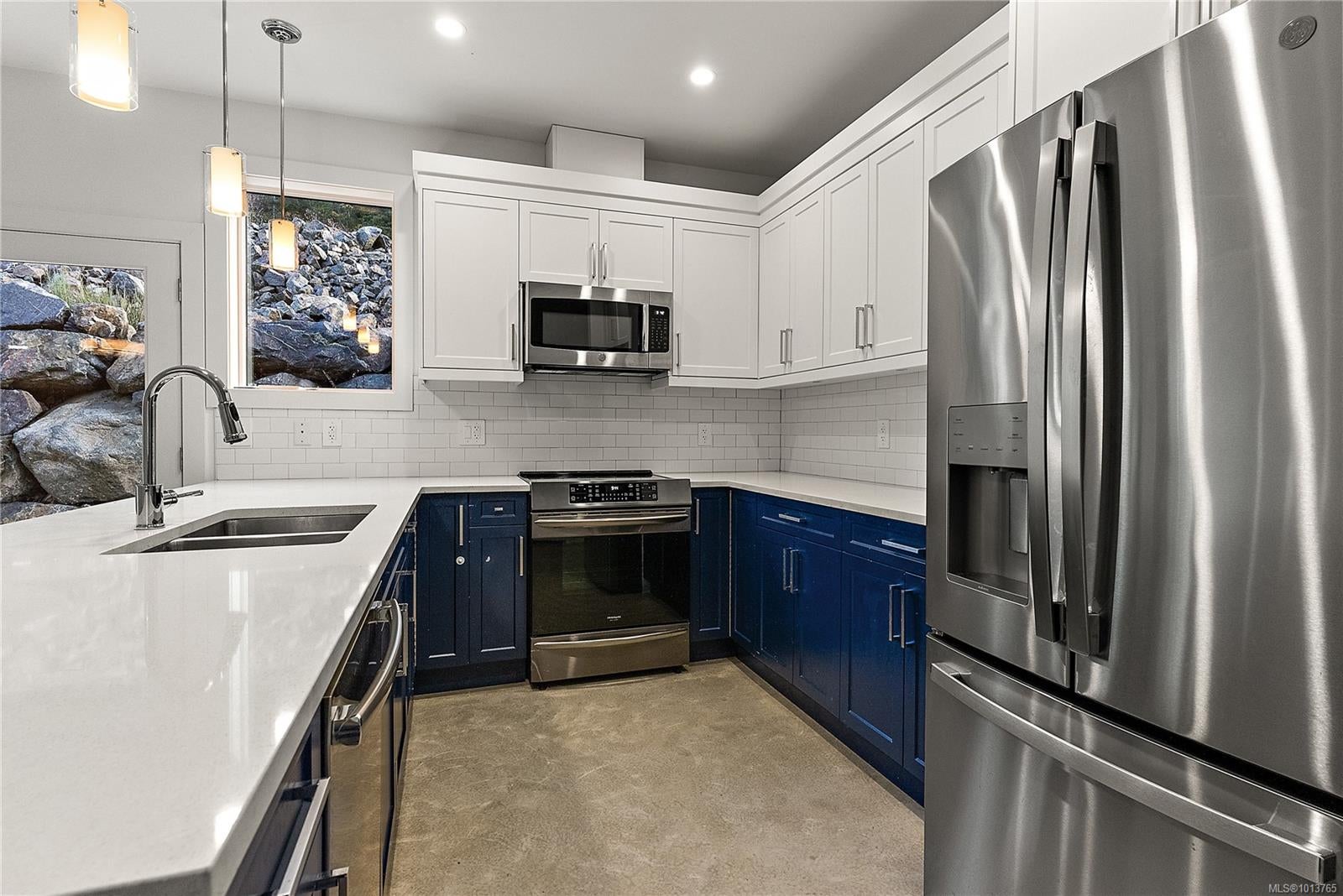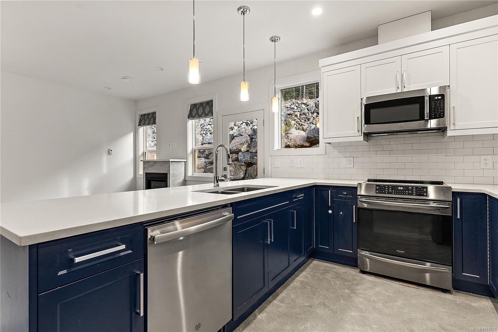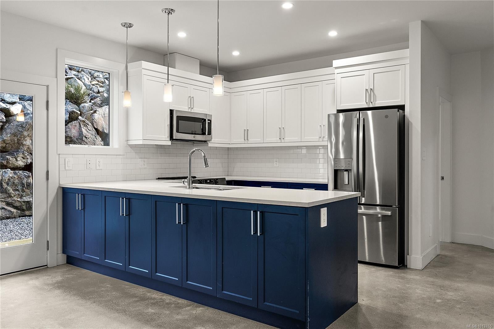 Introducing a stunning nearly new rancher for sale in the coveted Shawnigan Heights neighborhood. This modern home boasts a garage and double width driveway, offering ample parking and storage space. Enjoy the ease of single-level living and a thoughtfully designed layout that maximizes comfort and functionality. With high-quality finishes throughout, including quartz counters, stainless appliances, soft close cabinets and polished concrete floors, this home exudes contemporary elegance. You will love the open concept, no step living with soaring high ceilings and natural gas fireplace. Complete with 2 large bedrooms, 2 full bathrooms and a spacious den/office. Enjoy the benefits of having a new home warranty without paying the GST! Located in a sought-after area, residents can enjoy the tranquility of suburban living while being just 15 mins to amenities, schools, parks, and more. Don't miss the opportunity to own this exceptional property.