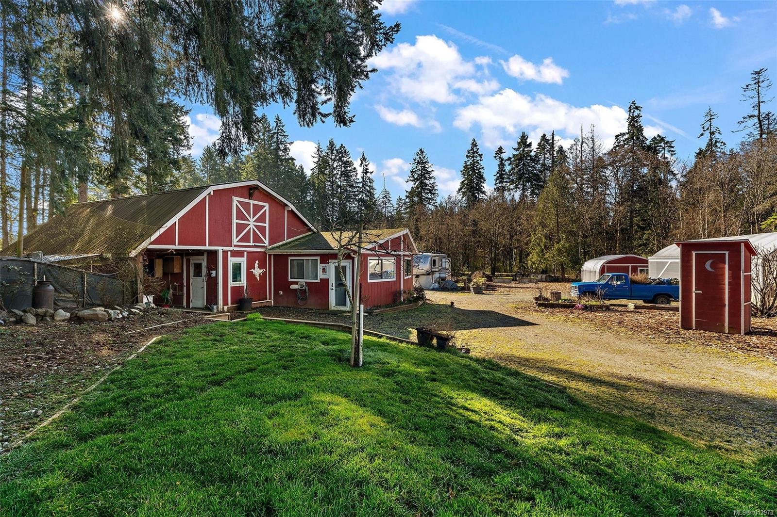 Welcome to Red Bell Farm, a serene 2.73 acre retreat backing onto the Cowichan Valley Trail, offering privacy, charm, and endless possibilities yet only a 6 minute drive to downtown Duncan. The 4-bedroom, 2-bathroom farmhouse has been lovingly maintained, preserving the warmth and functionality of a traditional countryside home. The flat, sun-drenched acreage is perfect for agricultural pursuits, featuring outdoor gardens, lush foliage, fruit trees, and a productive greenhouse. Fully fenced with irrigation, it’s ready for sustainable farming or livestock. A picturesque pond with a nearby outdoor kitchen and fire pit creates the ideal setting for entertaining, quiet reflection, or other pursuits. The property is well-equipped with multiple outbuildings, including a barn, paddocks with a separate kitchen and farm stand/studio, and a spacious insulated Quonset building. Income opportunities abound, with potential for campsites, farm stands, livestock boarding, or the addition of a suite or secondary home. Whether you dream of a working farm, a rural escape, or a unique business venture, Red Bell Farm offers a rare blend of natural beauty, practicality, and potential. Don’t miss this one-of-a-kind property!