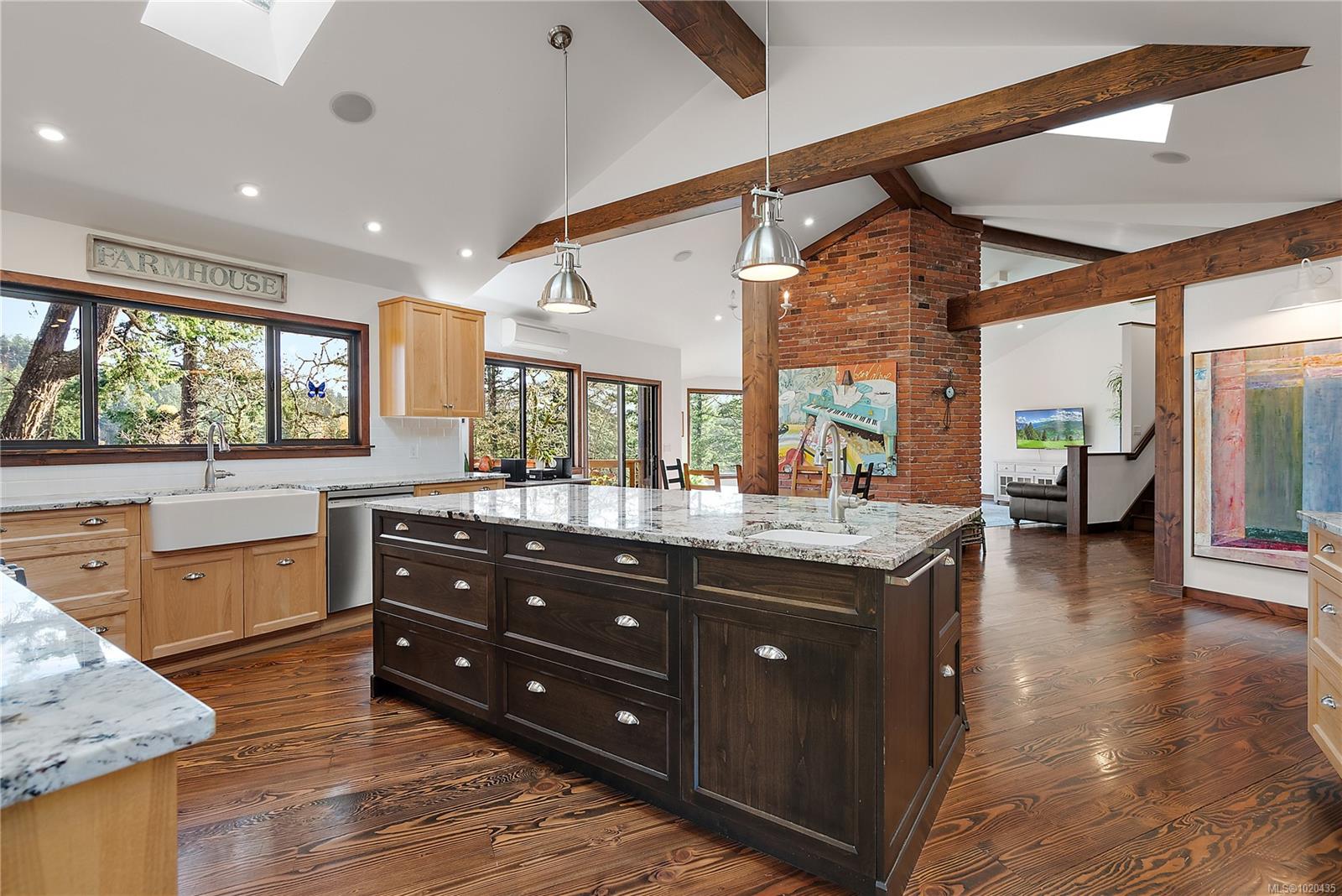 Escape to your very own 9.2 acres of gently rolling meadows & lush, mature forest in highly sought-after W. Saanich. Perfectly positioned just mins. from Victoria’s urban conveniences, this exceptional property offers the rare combination of privacy, tranquility, & accessibility. A beautifully renovated residence is perched at the heart of the acreage, showcasing an open-concept design that blends modern comfort with timeless West Coast style. The gourmet chef’s kitchen features gleaming granite countertops, premium stainless-steel appliances, a large island & custom cabinetry—ideal for both entertaining & everyday living. Vaulted ceilings & skylights flood the main level with natural light, while the striking brick fireplace creates a cozy focal point for family gatherings. The deluxe primary suite is a true retreat which includes a spa-inspired ensuite with a soaker tub & walk-in shower. 2 additional bedrooms, a full bath and a half bath complete the main level. Downstairs, a spacious family room, recreation area/versatile 1 bed suite with full kitchen offer flexibility for guests, teens or extended family. Step outside to enjoy the ultimate in indoor-outdoor living on the expansive wraparound deck with a hot tub. Outdoors, this property is a dream for hobby farmers & equestrian enthusiasts alike. The custom-built pole barn features a hay loft, & the fenced pasture is suitable for horses, cows or sheep. Additional infrastructure includes a pig pen, a chicken coop, & covered parking stalls. A detached 3 car garage with an impressive 700 sq.ft. workshop above offers endless possibilities for hobbies or a home business. A-1-zoned with rural property status & surrounded by scenic forest trails, this property invites you to embrace country living without compromise. Excellent schools, local markets, & recreation are just minutes away. Ask us about available agricultural grants & small business bursaries that can help bring your rural dreams to life.