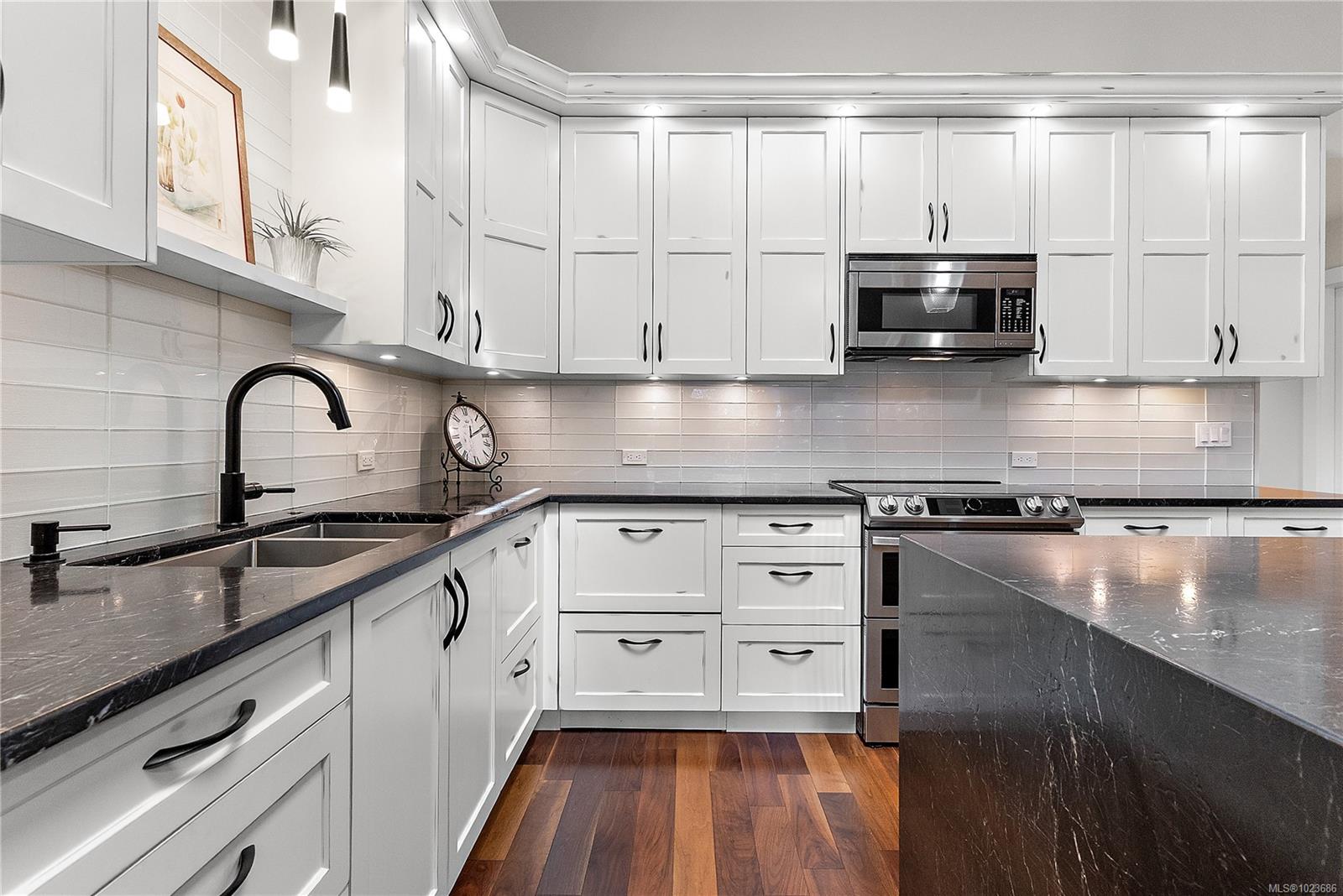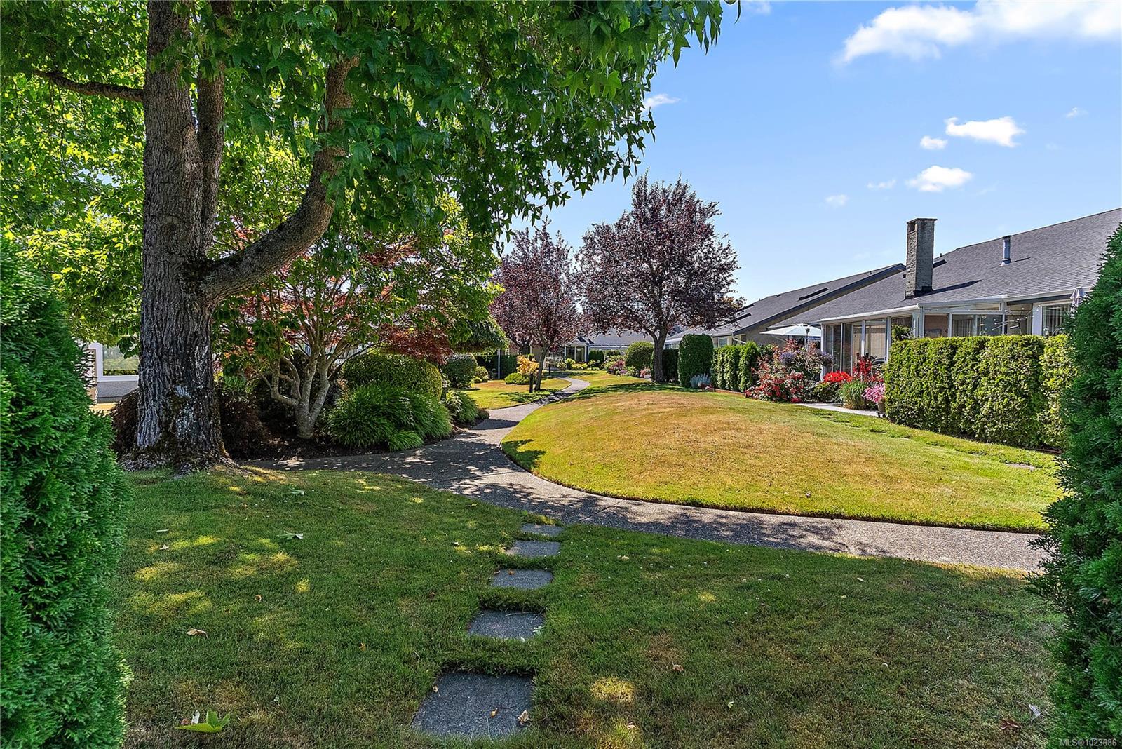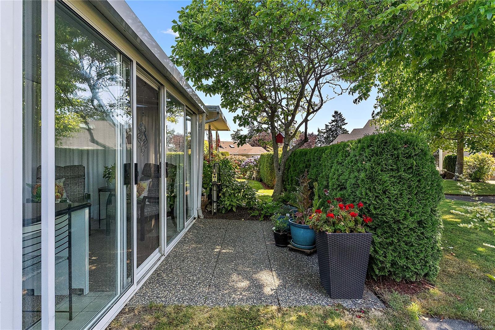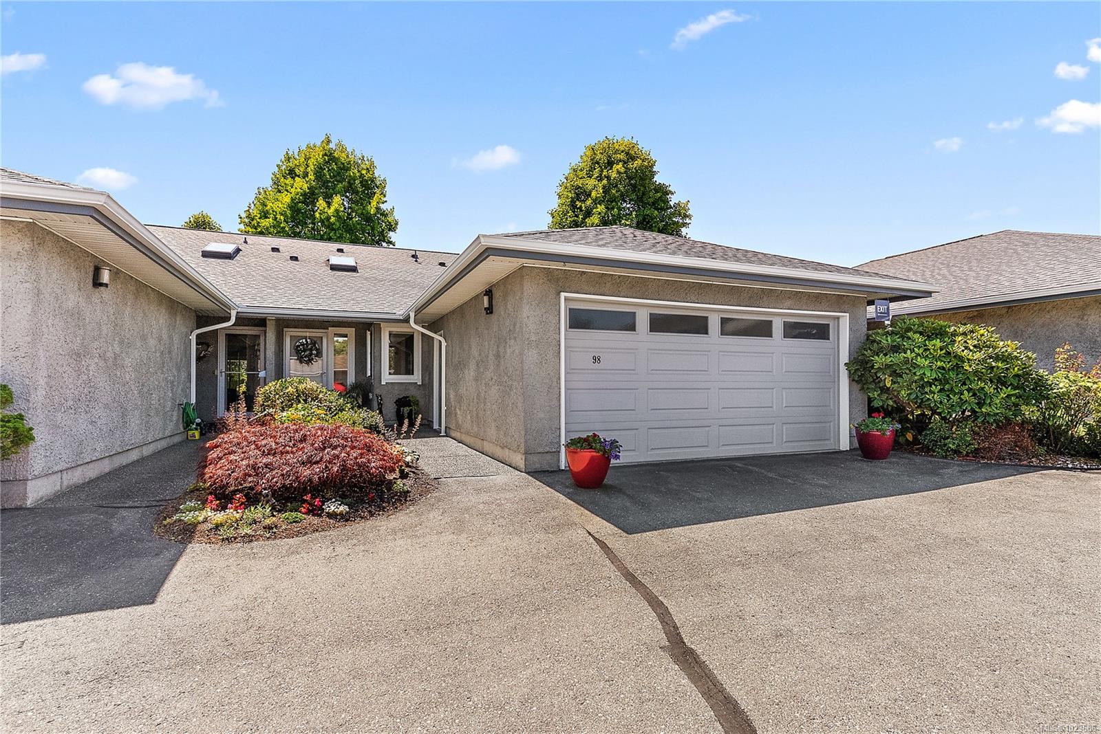 Absolutely beautifully updated throughout 1,279 sq. ft. one-level townhouse located in the sought-after Water’s Edge Oceanfront Resort Community in Central Saanich. This bright and spacious home offers 2 bedrooms and 2 bathrooms, thoughtfully designed for comfort, style, and accessibility. The beautifully updated kitchen includes an automatic-closing skylight and features a split double oven, induction cooktop (with new pots), twin-drawer dishwasher, fridge/freezer, and microwave. Quality finishes include manufactured hardwood, marble, slate, and tile flooring throughout. You will love the year-round green courtyard view from the spacious living room. Additional highlights include a three season sunroom off of the living room, central vacuum, front-load washer and dryer, hot water tank in the double attached garage, blinds throughout, and ample storage with custom closet and cupboard organizers. The primary bedroom features a grand entrance with double glass doors, a generous walk-in closet with custom organizers and a stunning 3-piece ensuite with a lipless shower, heated floors and a premium TOTO Washlet toilet. The updated main bathroom also includes heated floors. Wide hallways, a walk-in pantry, and other accessibility features make this home exceptionally functional. Enjoy resort-style living with Water’s Edge amenities including an indoor pool, hot tub and sauna, exercise room, library, guest accommodations and lounge (available to book for special events), outdoor BBQ area, putting green, and tennis court. The oceanfront is just a one-minute walk away. Ideally located only 5 minutes from Sidney and 20 minutes to downtown Victoria, this exceptional home offers a rare combination of luxury, lifestyle, and convenience.