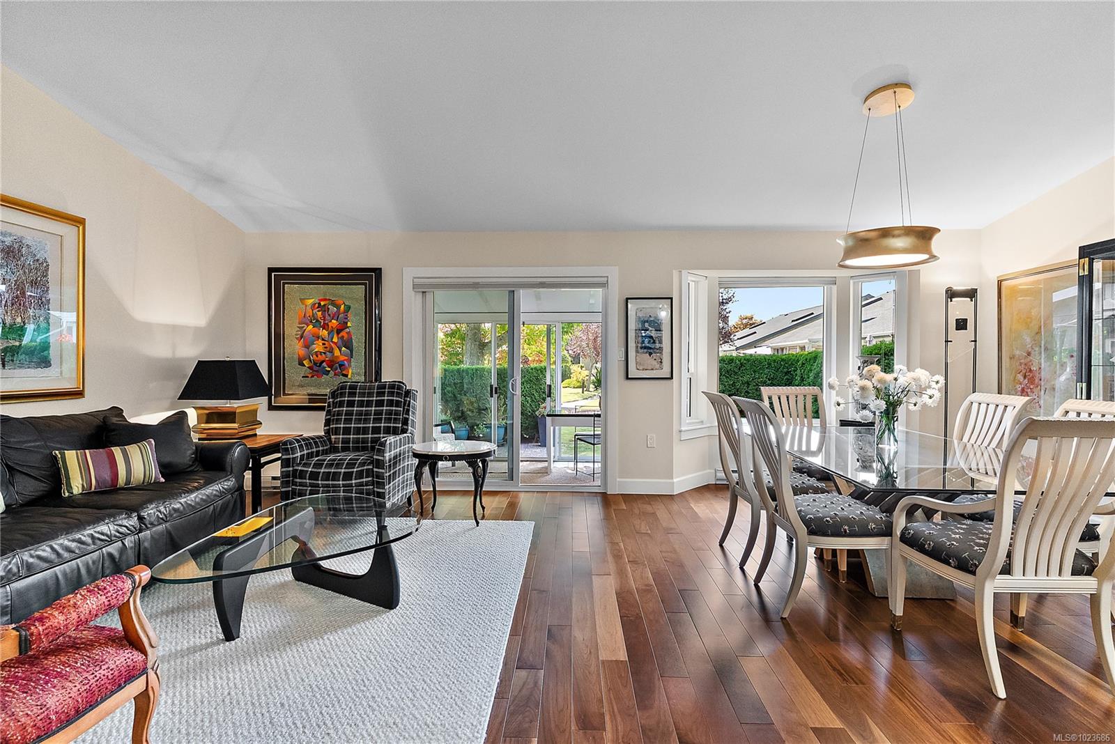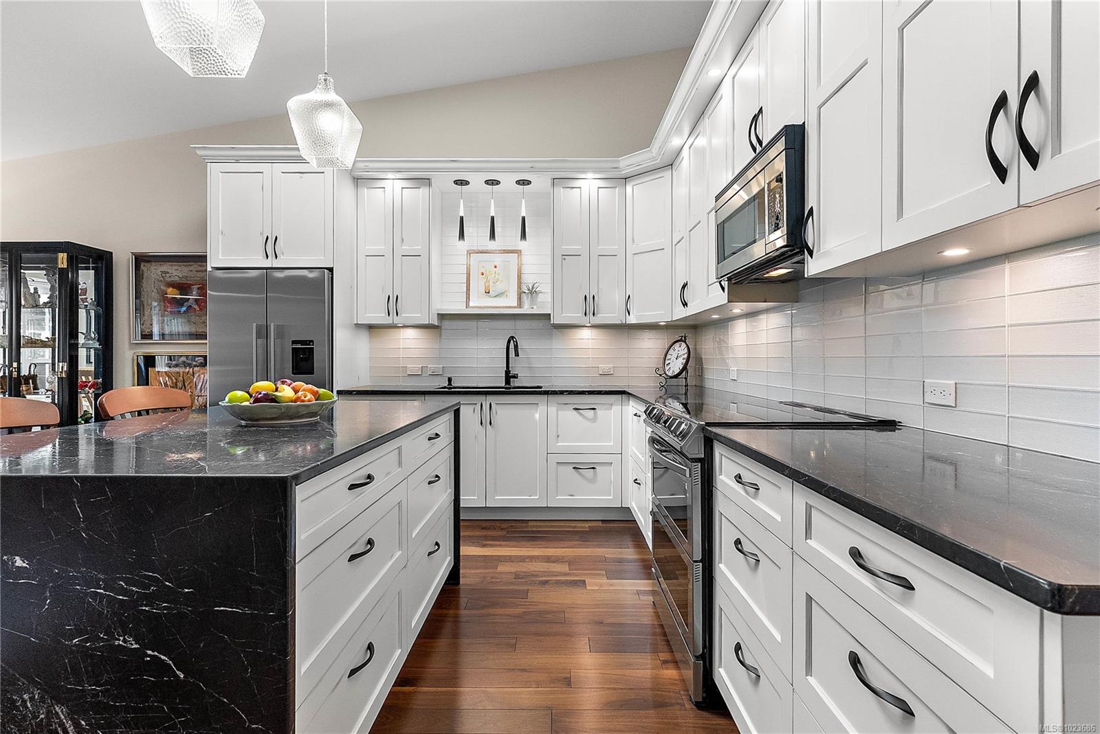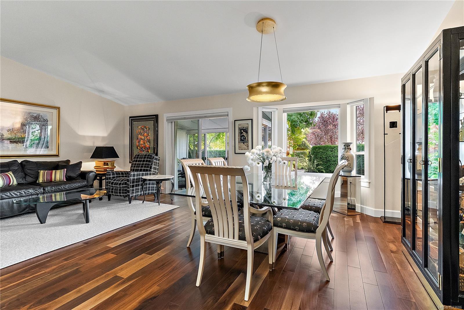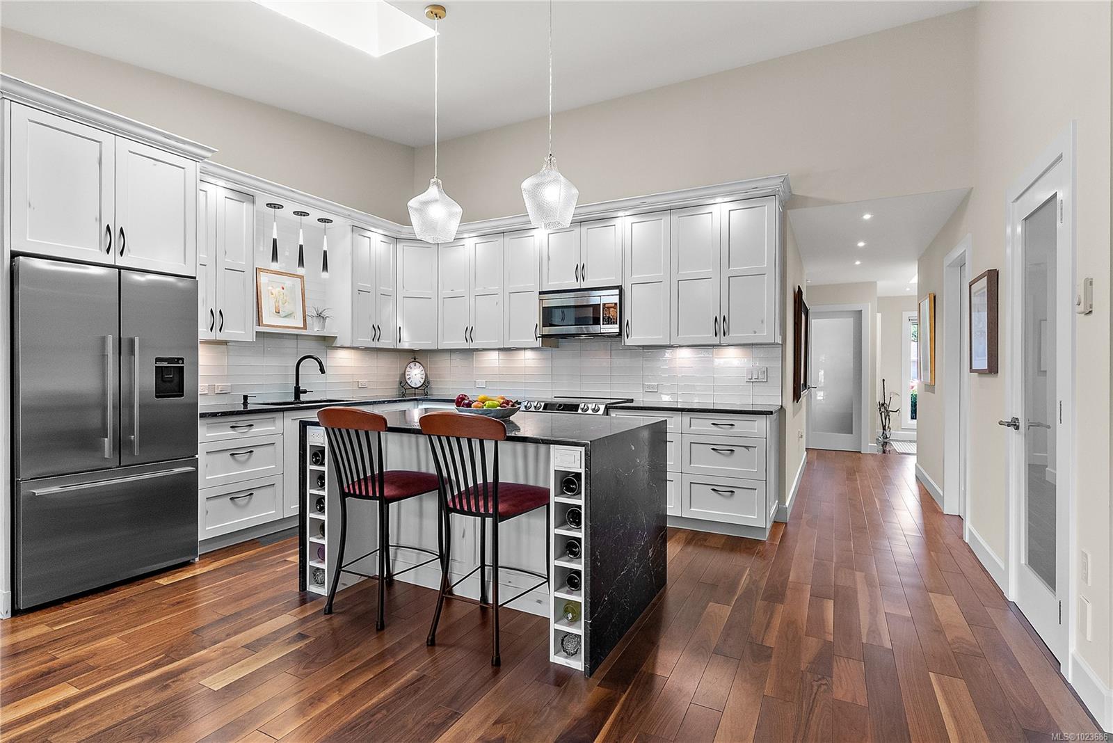 Absolutely beautifully updated throughout 1,279 sq. ft. one-level townhouse located in the sought-after Water’s Edge Oceanfront Resort Community in Central Saanich. This bright and spacious home offers 2 bedrooms and 2 bathrooms, thoughtfully designed for comfort, style, and accessibility. The beautifully updated kitchen includes an automatic-closing skylight and features a split double oven, induction cooktop (with new pots), twin-drawer dishwasher, fridge/freezer, and microwave. Quality finishes include manufactured hardwood, marble, slate, and tile flooring throughout. You will love the year-round green courtyard view from the spacious living room. Additional highlights include a three season sunroom off of the living room, central vacuum, front-load washer and dryer, hot water tank in the double attached garage, blinds throughout, and ample storage with custom closet and cupboard organizers. The primary bedroom features a grand entrance with double glass doors, a generous walk-in closet with custom organizers and a stunning 3-piece ensuite with a lipless shower, heated floors and a premium TOTO Washlet toilet. The updated main bathroom also includes heated floors. Wide hallways, a walk-in pantry, and other accessibility features make this home exceptionally functional. Enjoy resort-style living with Water’s Edge amenities including an indoor pool, hot tub and sauna, exercise room, library, guest accommodations and lounge (available to book for special events), outdoor BBQ area, putting green, and tennis court. The oceanfront is just a one-minute walk away. Ideally located only 5 minutes from Sidney and 20 minutes to downtown Victoria, this exceptional home offers a rare combination of luxury, lifestyle, and convenience.