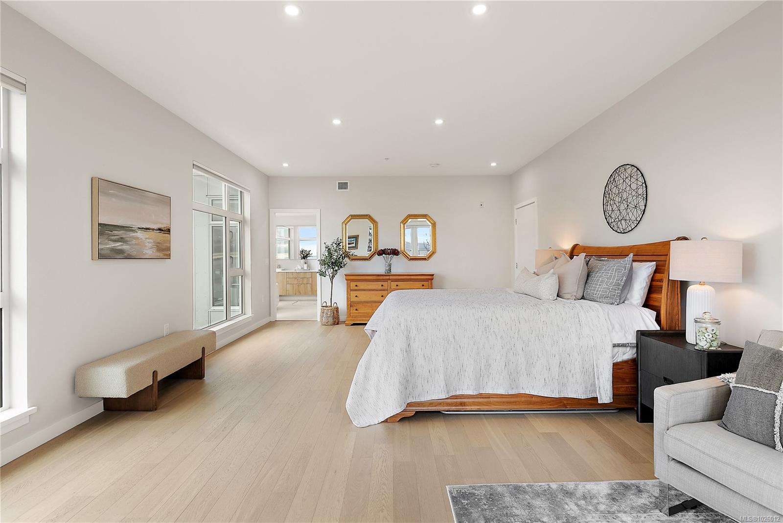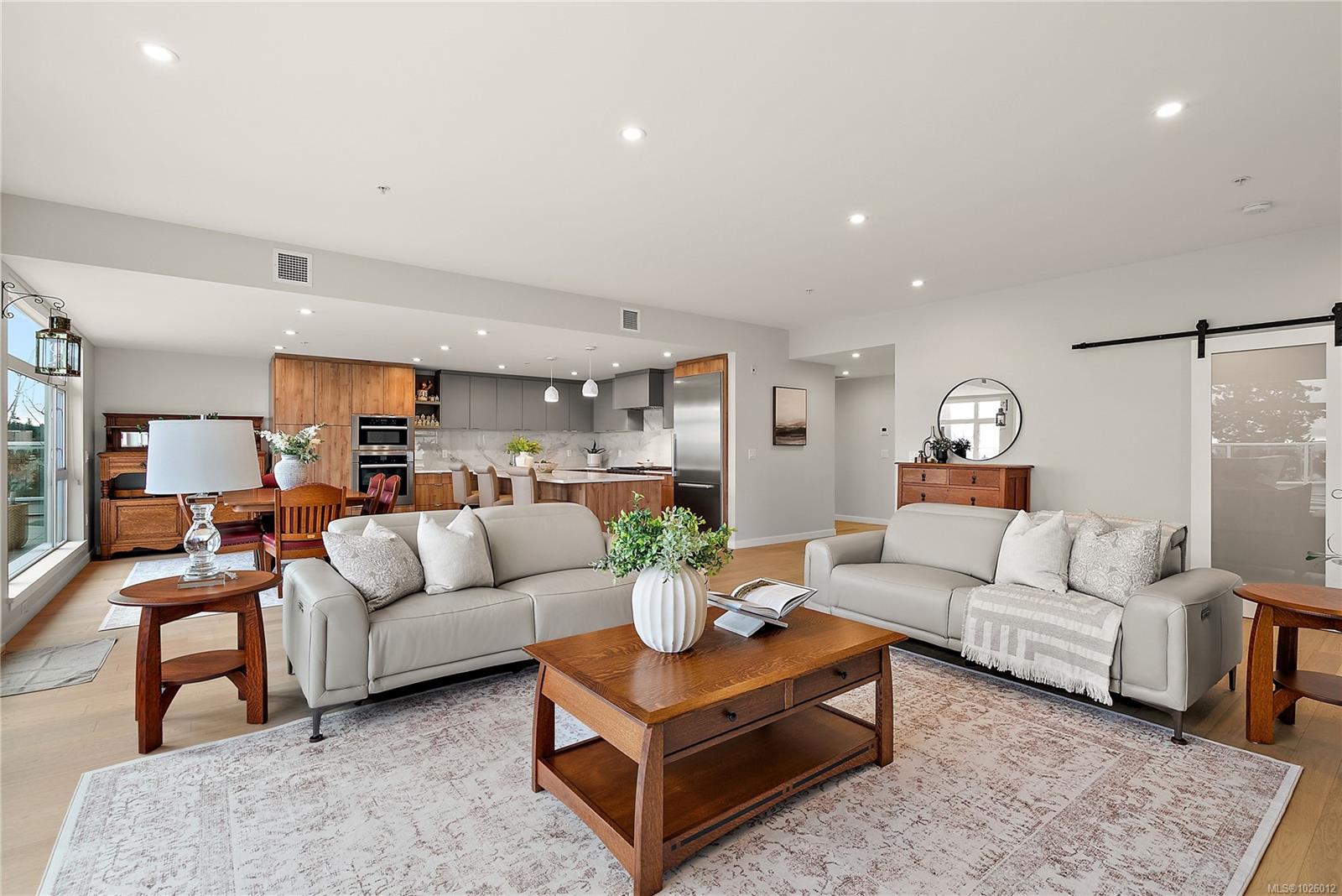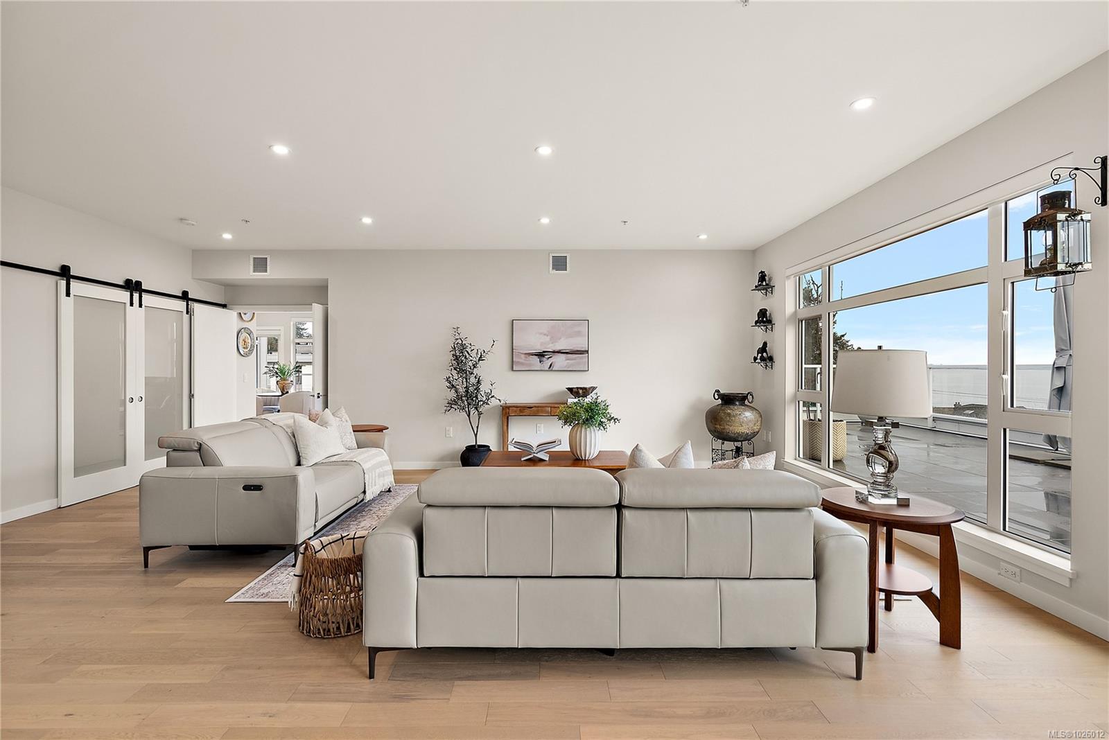 Experience refined living at the prestigious Haro in desirable Cordova Bay. This stunning residence offers breathtaking panoramic views and contemporary design at its finest. From the designer finishes to the chef-inspired kitchen and spa-like bathrooms, every detail reflects quality and sophistication. Warm light wood tones, natural veined tile, bright accents, and generous proportions create an inviting yet elegant atmosphere throughout. The gourmet kitchen is equipped with premium appliances and smart features, delivering exceptional style and performance for everyday living and entertaining. Step outside to the expansive 1,100 sq. ft. terrace and take in spectacular 270-degree views stretching from Cordova Bay’s sandy beaches to the snow-capped peaks of Mount Baker and beyond — a truly remarkable outdoor retreat. Enjoy close proximity to world-class golf, shopping, Mattick’s Farm, scenic hiking and biking trails, paddling, marinas, and more. Complete with two parking stalls, two storage lockers, and pet-friendly policies, this is a rare opportunity to own in one of the area’s most sought-after buildings.