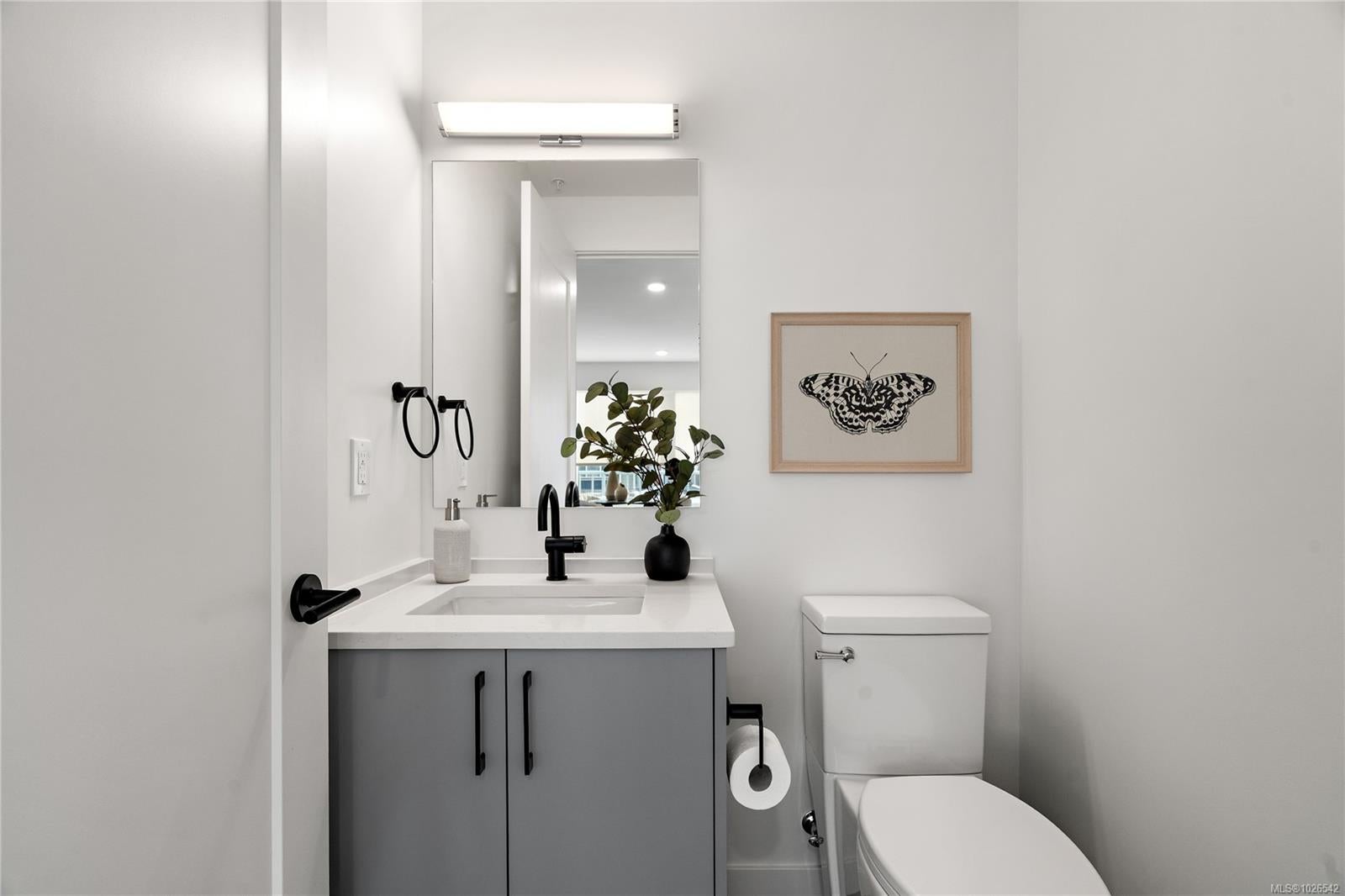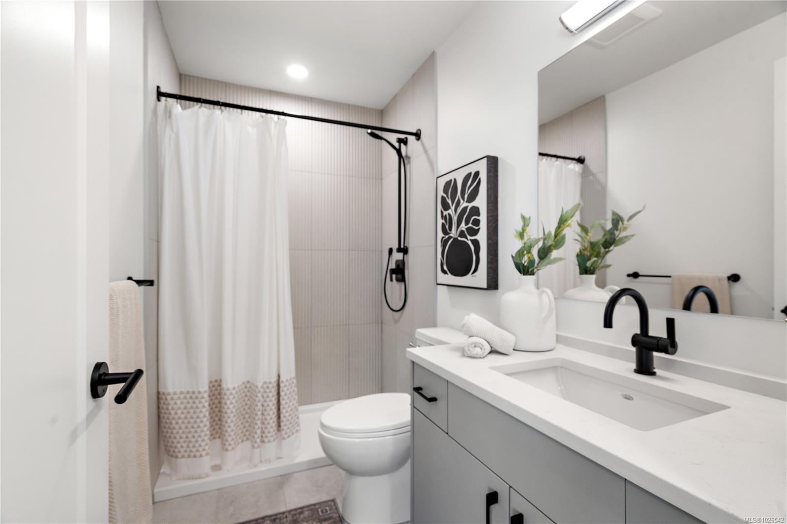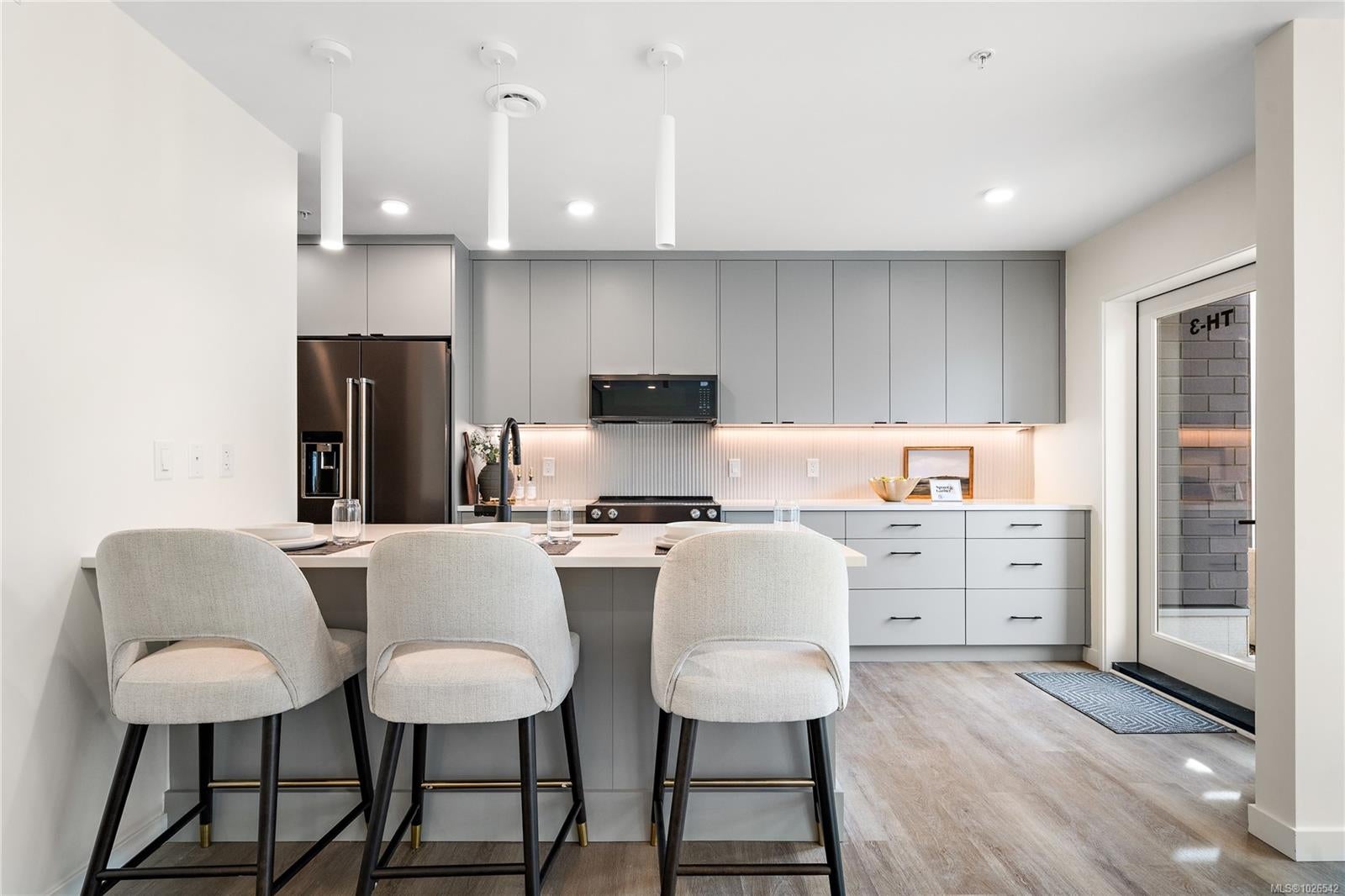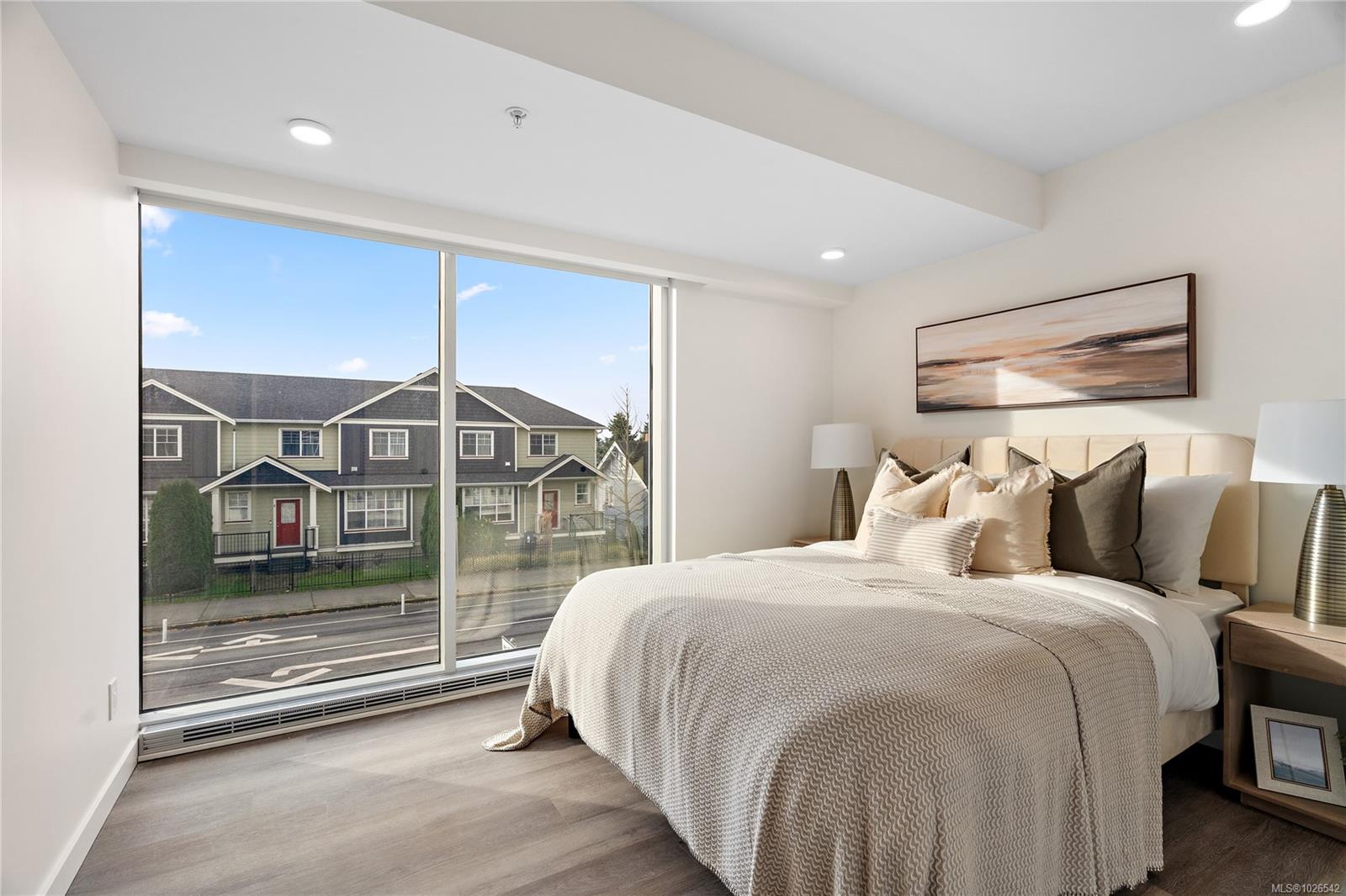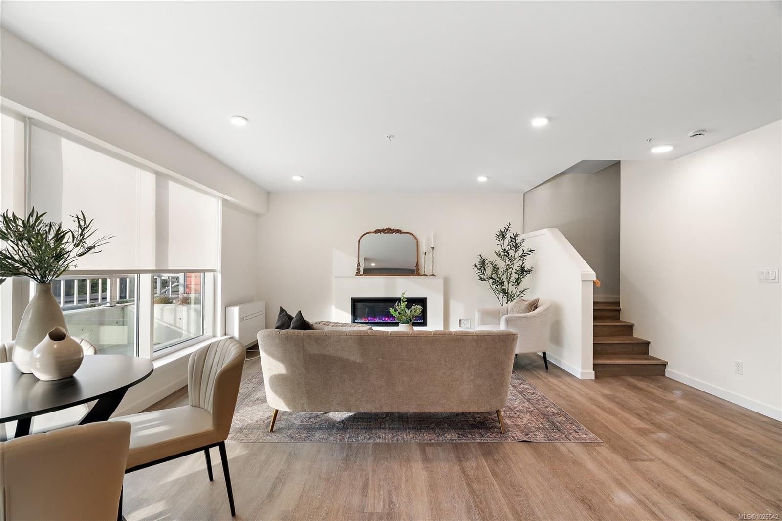 Move-in ready townhome at The Proxima! TH5 is a bright & spacious south-facing 2 level residence offering over 1,200 finished sq ft & own walk-up patio with separate entrance in the heart of Esquimalt Village. This thoughtfully designed home features 2 beds & 3 baths w/ an ideal layout that keeps the living & entertaining spaces on the main level while both bedrooms are situated upstairs. Expansive floor-to-ceiling windows flood the home with natural light, enhancing the open & airy atmosphere throughout. Interiors designed by Spaciz Design Co., the home is finished in the sophisticated Caligo colour scheme & features quartz countertops, an eat-in kitchen island, premium stainless steel appliance package, & a heat pump with cooling for year-round comfort. Located just moments from Saxe Point Park, local breweries, Esquimalt Market, shopping, and the Archie Browning Sports Centre, this home offers exceptional walkability and convenience. 1 parking stall & 2 storage lockers are included.