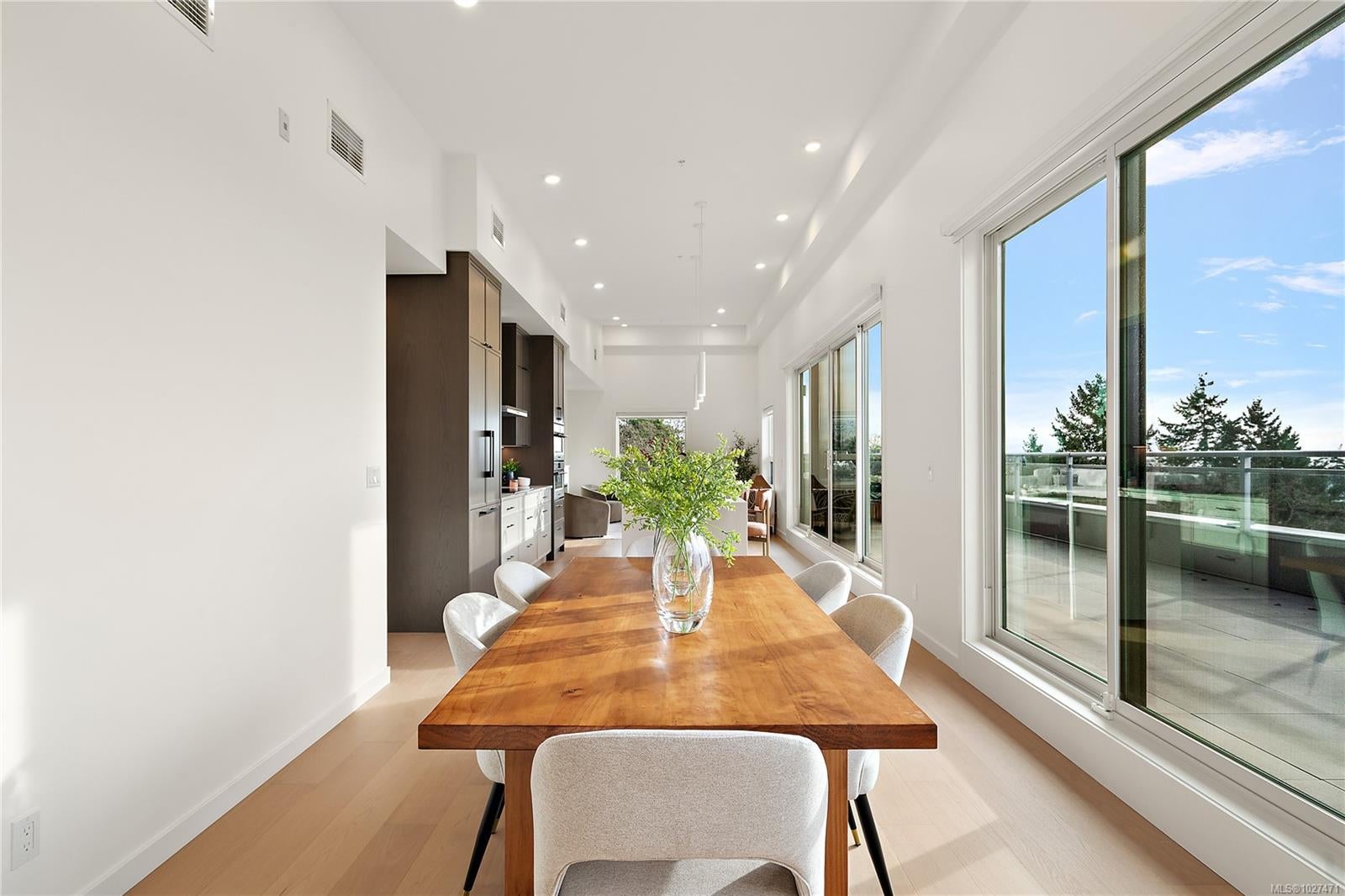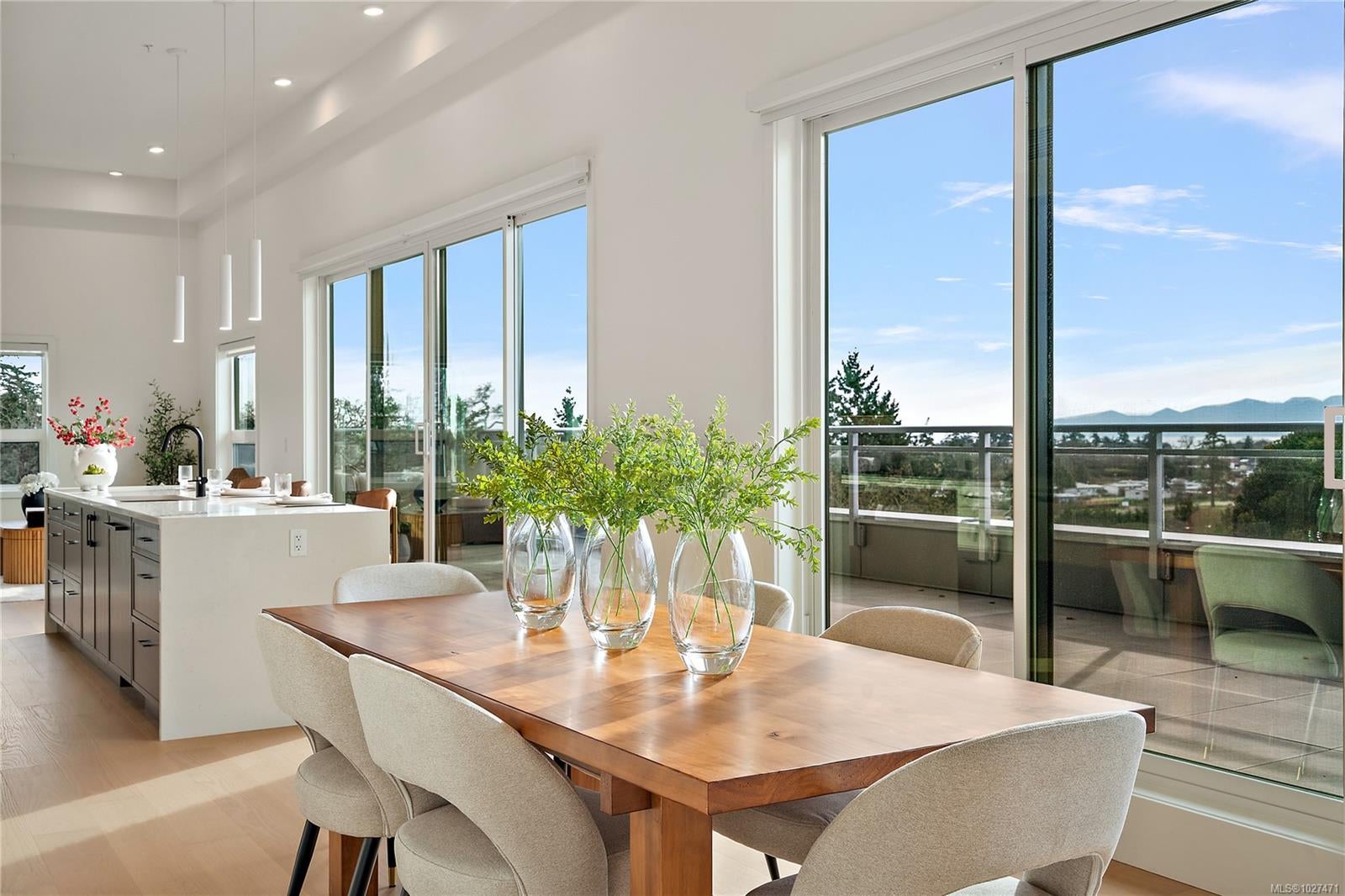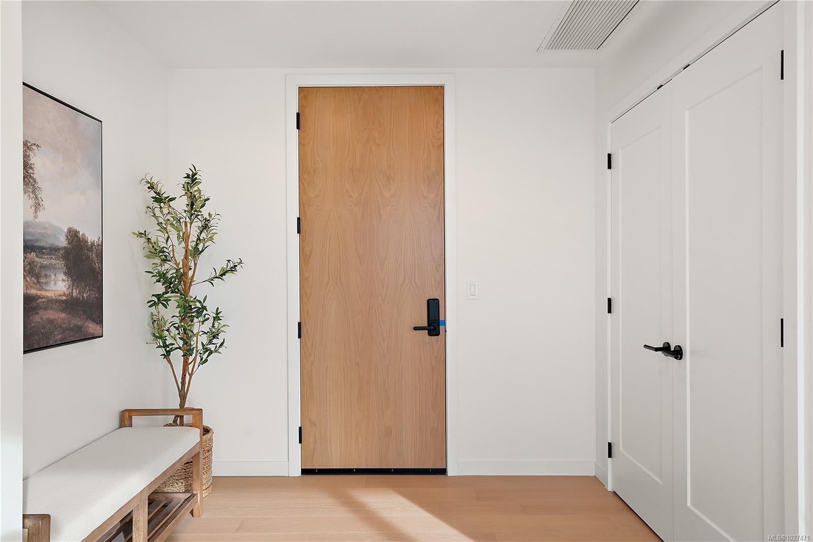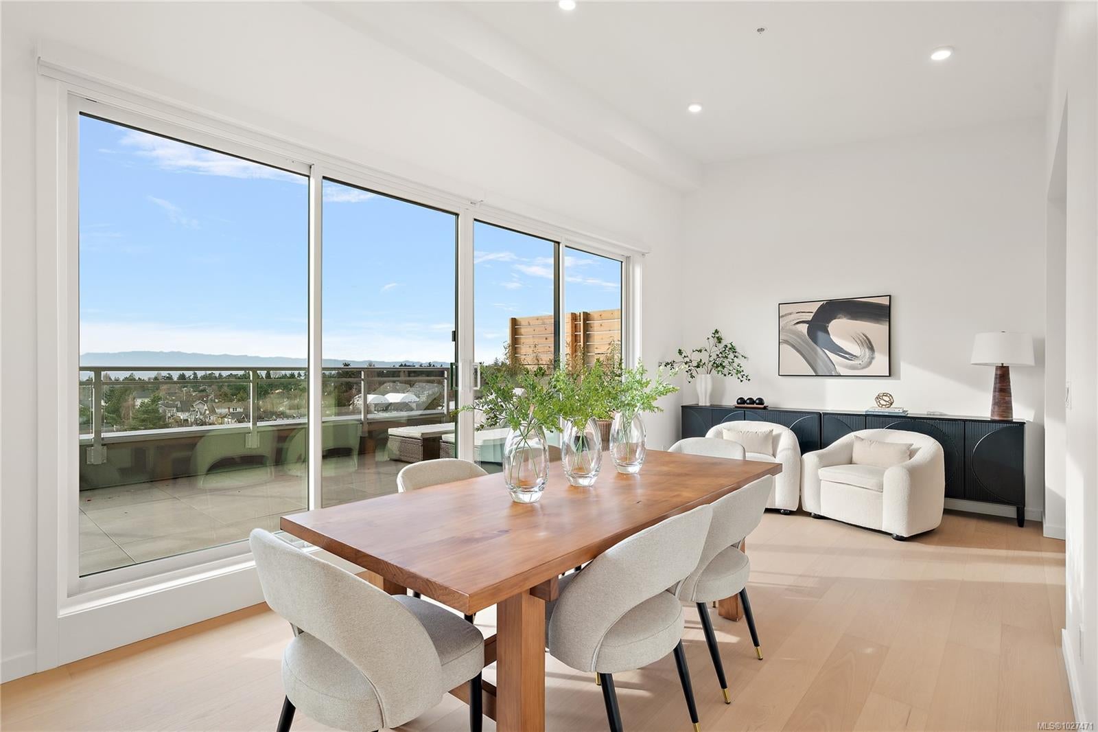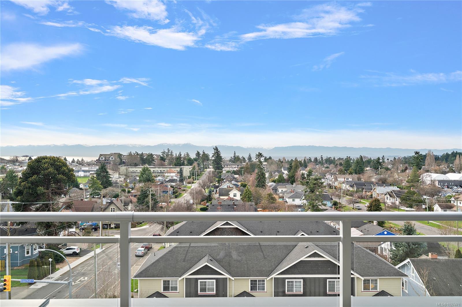 This premium penthouse unit is perfectly positioned in the heart of Esquimalt Village, just moments from Saxe Point Park, local breweries, shops, & the waterfront. This exceptional unit offers a striking, straight-on view to the ocean w/ mountain vistas, a captivating outlook that truly elevates everyday living. Vaulted ceilings enhance the sense of space & light, while rich hardwood flooring flows throughout. The kitchen is appointed w/ premium upgraded Fisher & Paykel appliances, blending elevated design w/ everyday functionality. The primary is a true retreat, featuring a walk-in closet & an extraordinary ensuite complete w/ oversized walk-in shower designed for a spa-like experience. The MASSIVE outdoor balcony is an expansive extension of your living space & the perfect setting to entertain, unwind, & take in the sweeping ocean & mountain views. Experience this move in ready unit for yourself & book an onsite viewing! Two secure underground parking spots included.