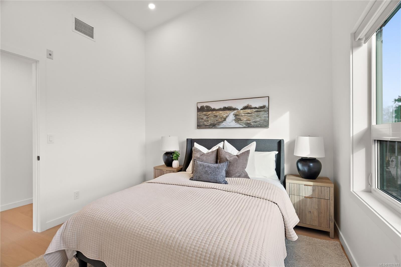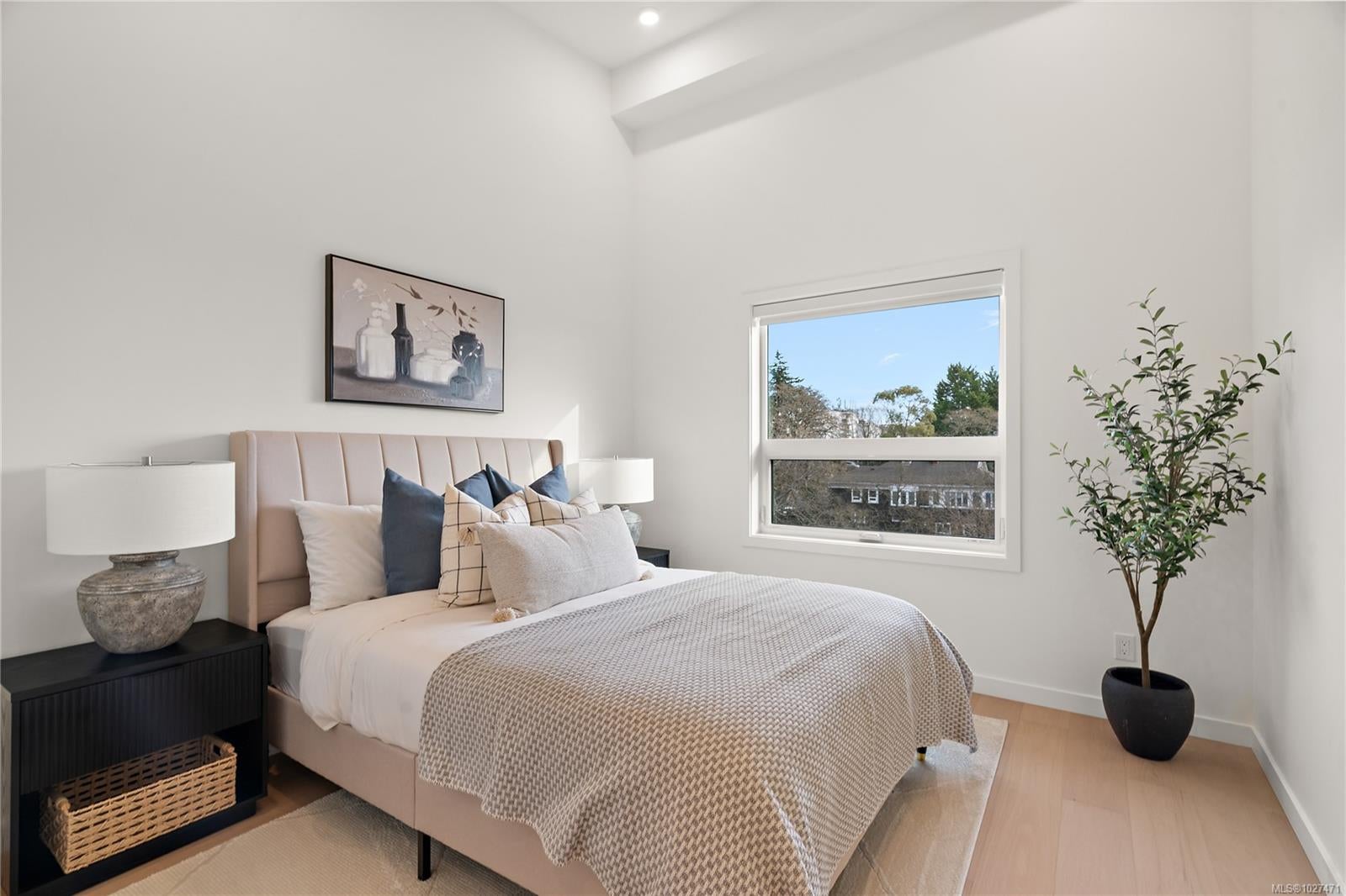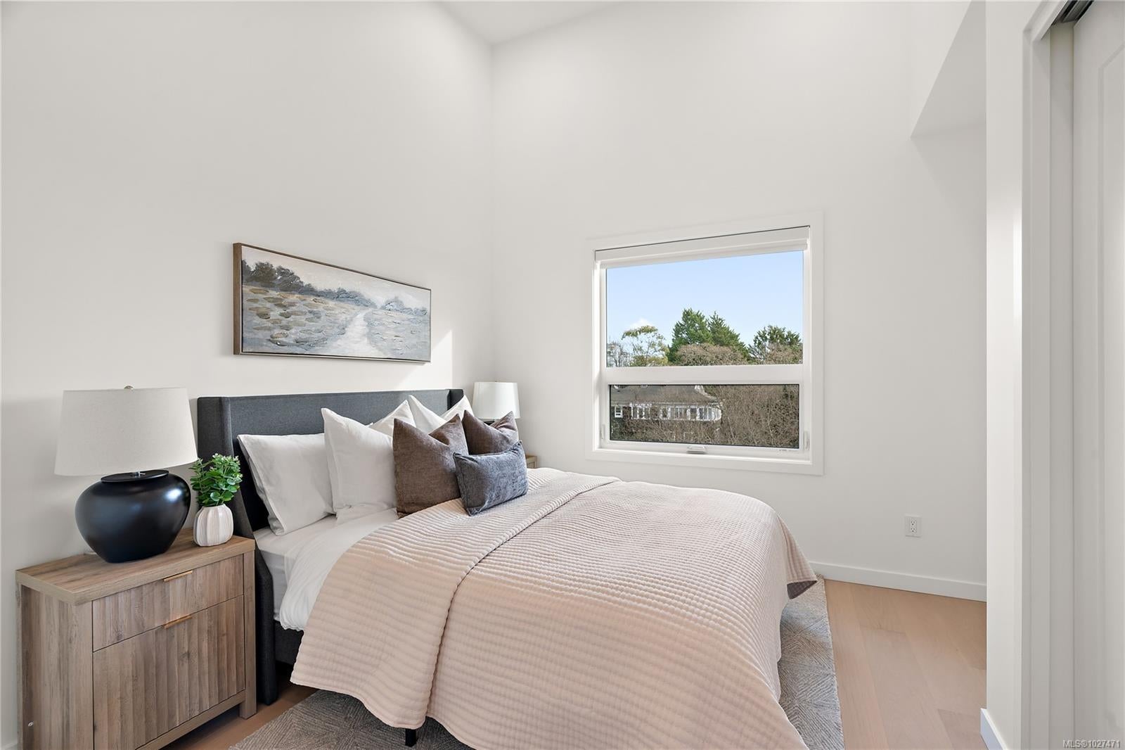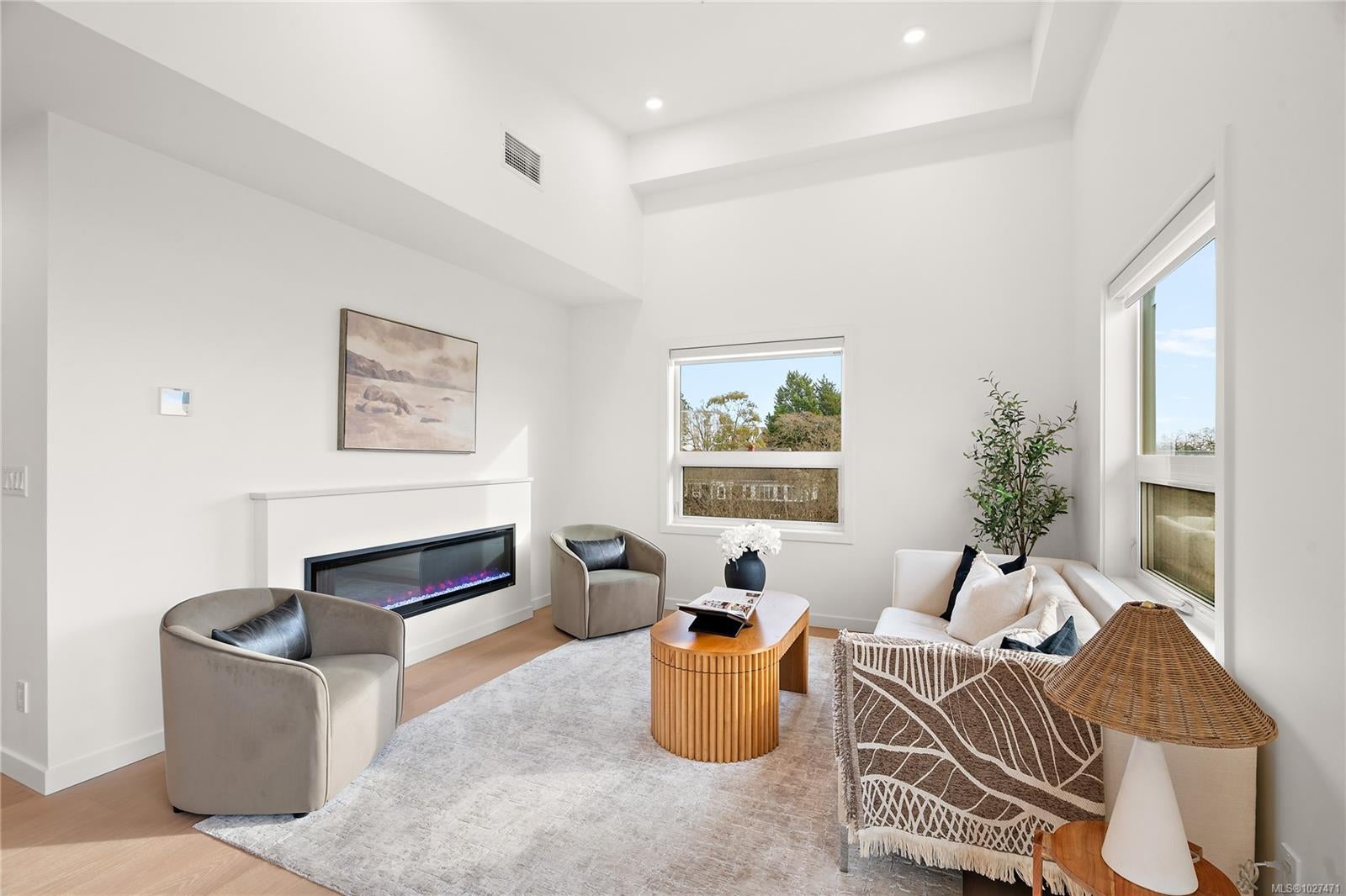 This premium penthouse unit is perfectly positioned in the heart of Esquimalt Village, just moments from Saxe Point Park, local breweries, shops, & the waterfront. This exceptional unit offers a striking, straight-on view to the ocean w/ mountain vistas, a captivating outlook that truly elevates everyday living. Vaulted ceilings enhance the sense of space & light, while rich hardwood flooring flows throughout. The kitchen is appointed w/ premium upgraded Fisher & Paykel appliances, blending elevated design w/ everyday functionality. The primary is a true retreat, featuring a walk-in closet & an extraordinary ensuite complete w/ oversized walk-in shower designed for a spa-like experience. The MASSIVE outdoor balcony is an expansive extension of your living space & the perfect setting to entertain, unwind, & take in the sweeping ocean & mountain views. Experience this move in ready unit for yourself & book an onsite viewing! Two secure underground parking spots included.