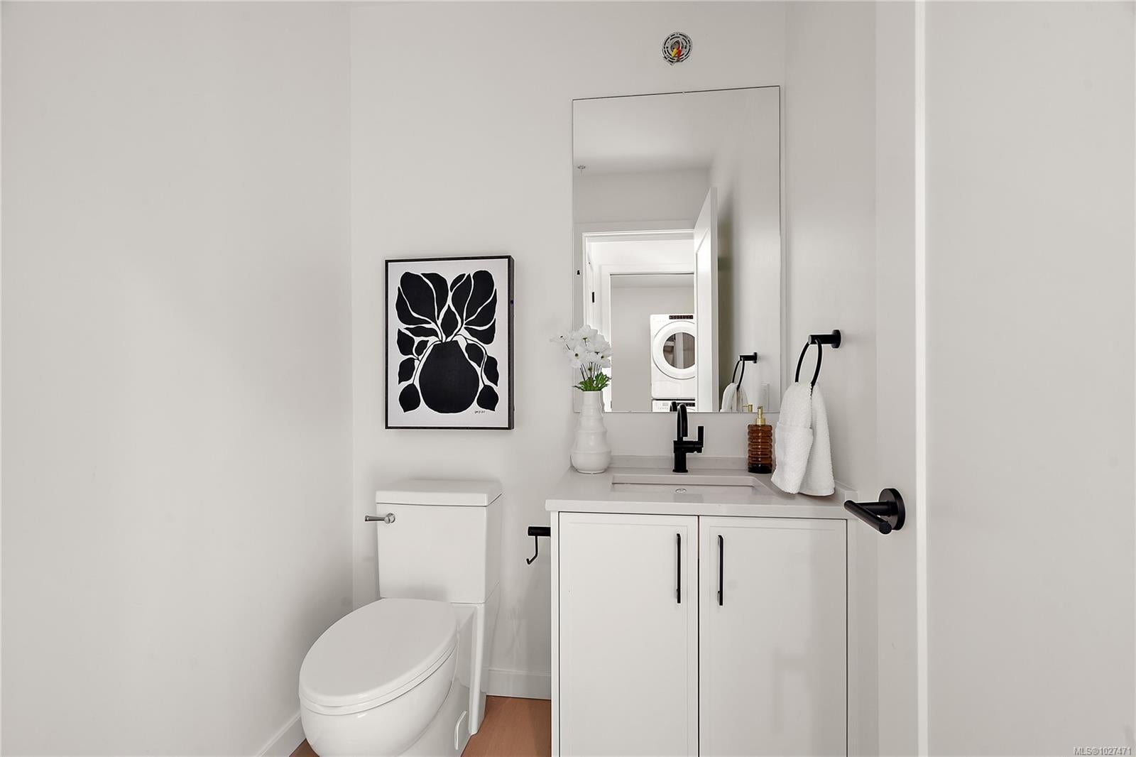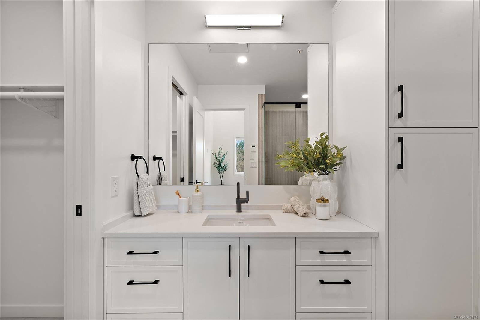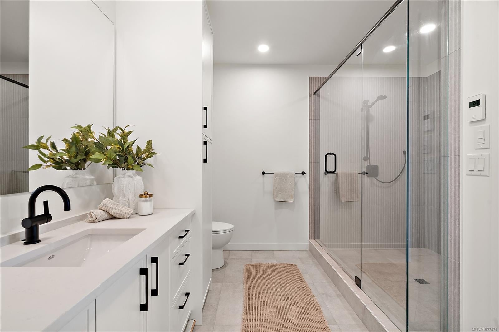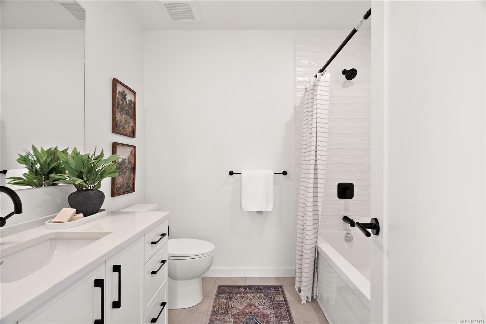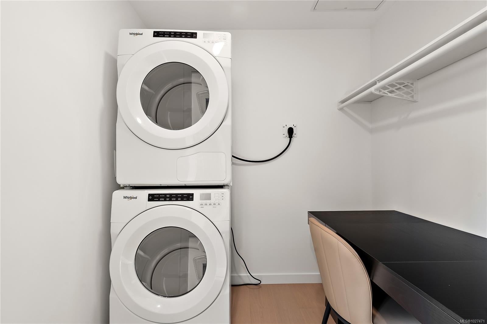 This premium penthouse unit is perfectly positioned in the heart of Esquimalt Village, just moments from Saxe Point Park, local breweries, shops, & the waterfront. This exceptional unit offers a striking, straight-on view to the ocean w/ mountain vistas, a captivating outlook that truly elevates everyday living. Vaulted ceilings enhance the sense of space & light, while rich hardwood flooring flows throughout. The kitchen is appointed w/ premium upgraded Fisher & Paykel appliances, blending elevated design w/ everyday functionality. The primary is a true retreat, featuring a walk-in closet & an extraordinary ensuite complete w/ oversized walk-in shower designed for a spa-like experience. The MASSIVE outdoor balcony is an expansive extension of your living space & the perfect setting to entertain, unwind, & take in the sweeping ocean & mountain views. Experience this move in ready unit for yourself & book an onsite viewing! Two secure underground parking spots included.