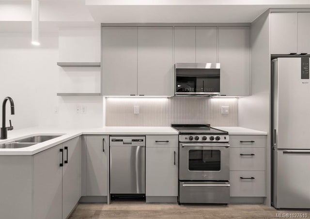 Move-in ready at The Proxima! Welcome to Unit 308 in the Bellus building located off Lampson Ave. A thoughtfully designed junior one-bed offering an ideal entry point into homeownership or a smart addition to your investment portfolio. Located in the heart of Esquimalt Village, The Proxima places you steps from everyday conveniences & weekend adventures alike, including Saxe Point Park, local breweries, Esquimalt Market, shopping, & the Archie Browning Sports Centre. Built by award-winning GT Mann Contracting with interiors curated by Spaciz Design, this home features quality finishes & efficient space planning. Enjoy quartz countertops, space saving appliances, separate storage, and a heat pump with cooling for year-round comfort. Overlooking The Proxima’s landscaped courtyard, this unit offers a peaceful outlook to unwind. Residents also enjoy access to a state-of-the-art gym, atrium, & inviting common spaces designed for connection & convenience.