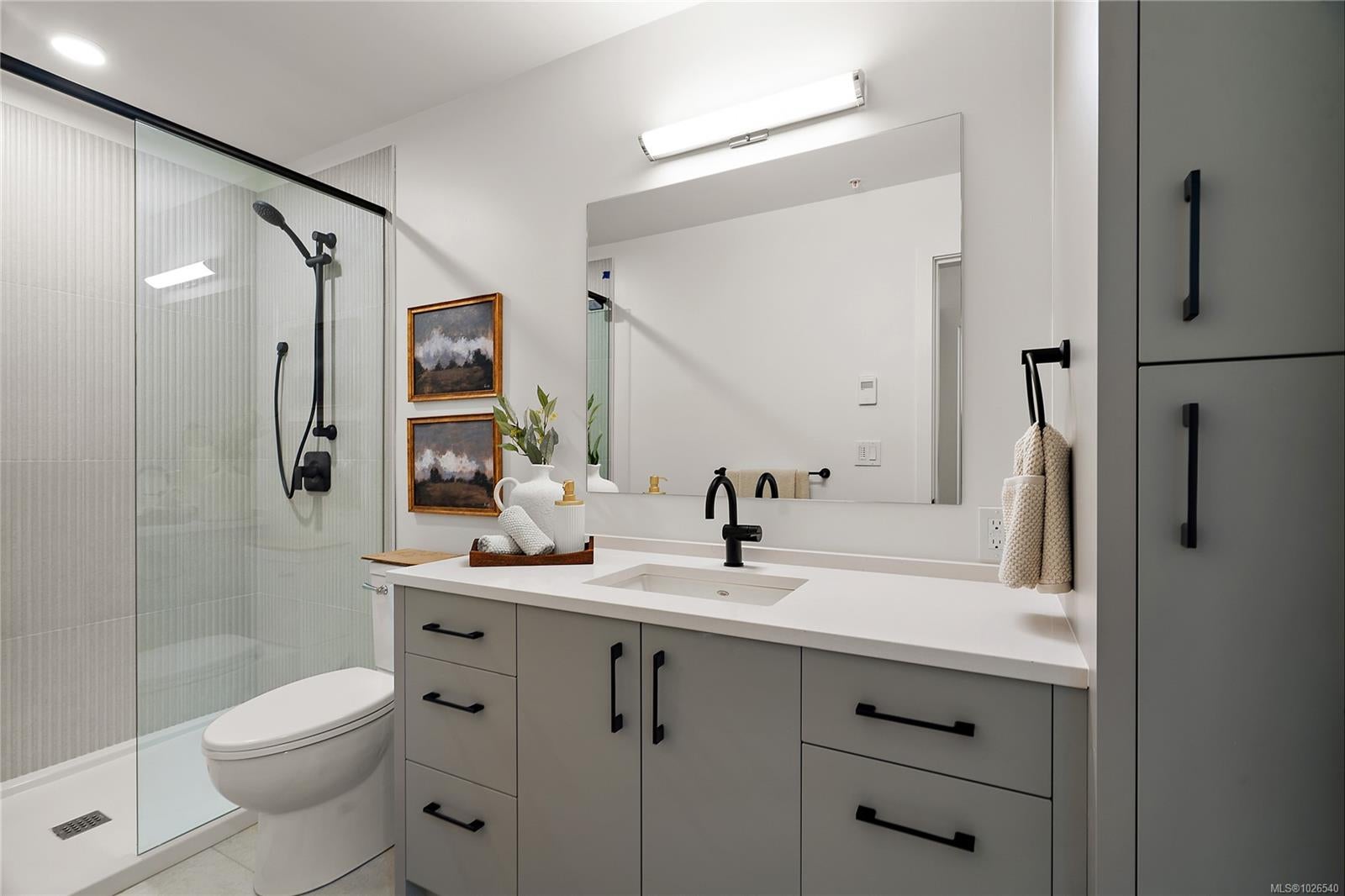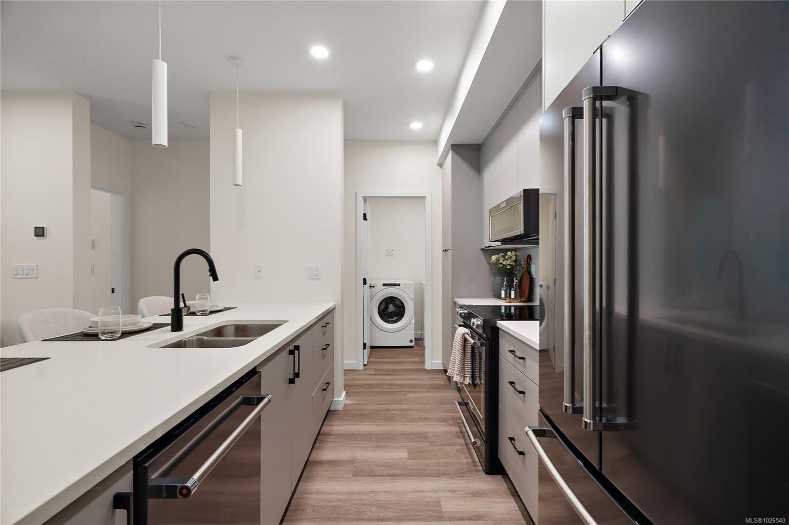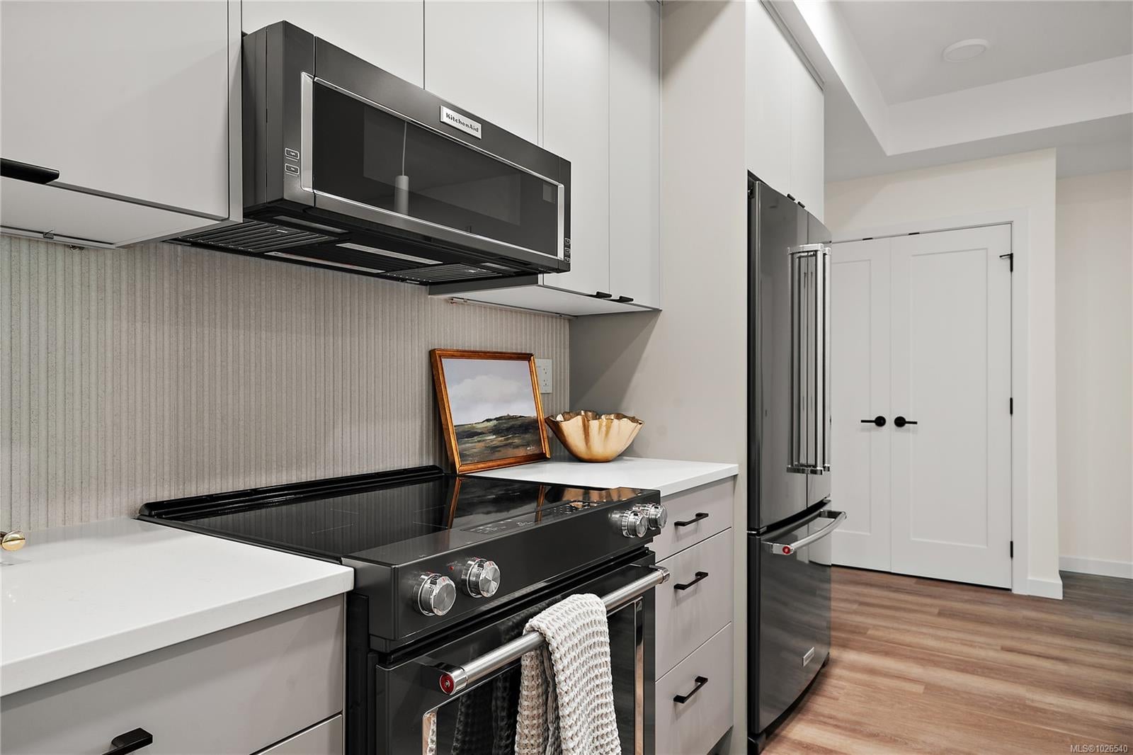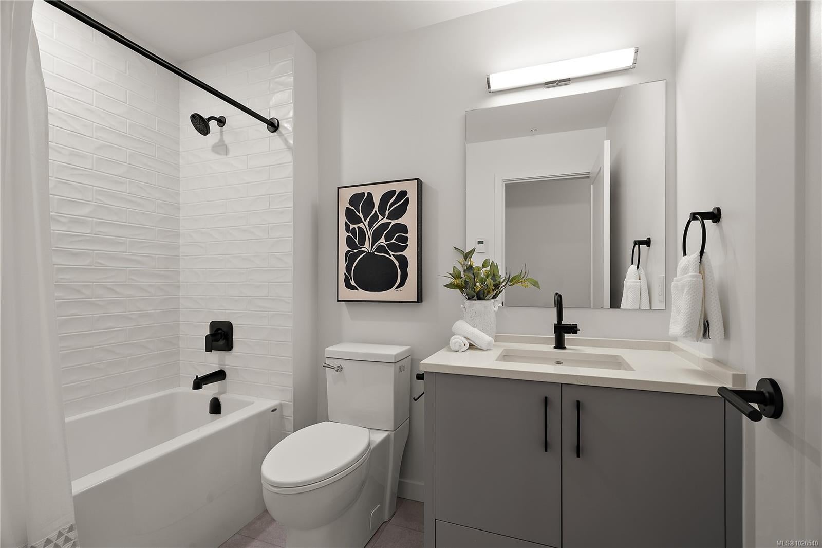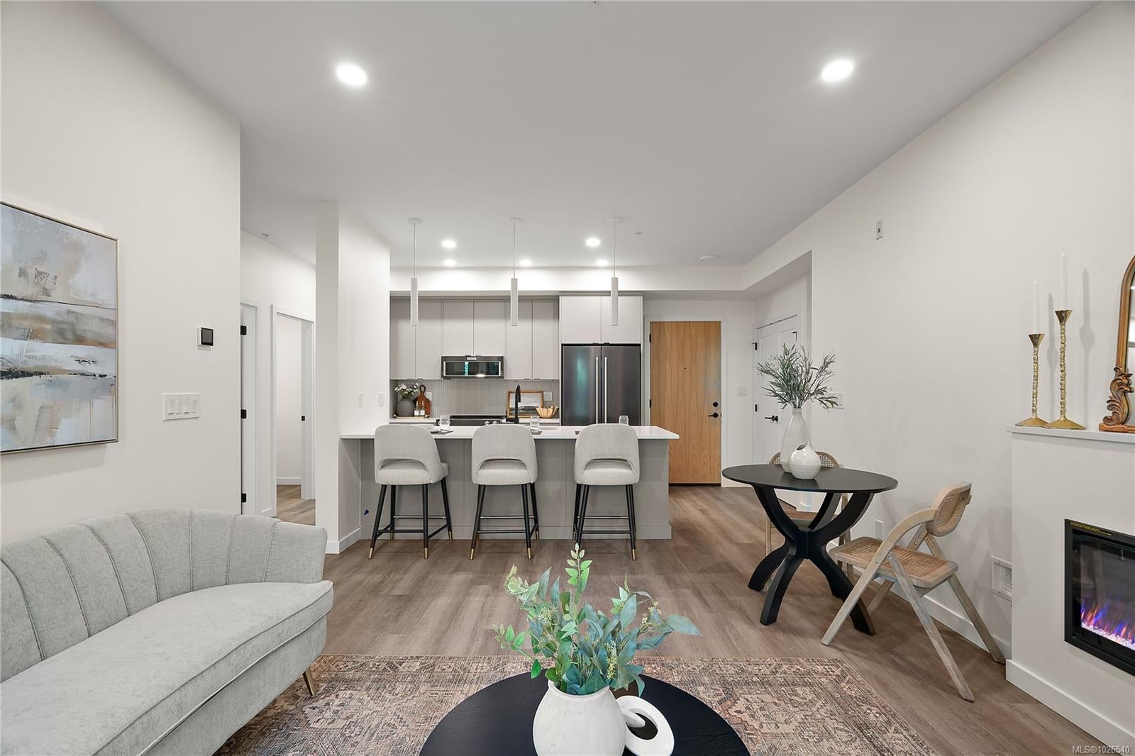 Move in ready! Located in the heart of Esquimalt Village, The Proxima is perfectly positioned for a life full of adventure, experiences, & amenities w/ Saxe Point Park, local breweries, Esquimalt Market, shopping, & the Archie Browning Sports Centre just a stone’s throw away. Unit 404 is located within the back Bellus building in a spacious 2 bedroom, 2 bathroom floor plan featuring our Caligo colour scheme mixing neutral & modern tones with quartz countertops, eat-in kitchen island, and black stainless KitchenAid appliance package. This unit is inclusive of one underground parking stall and storage locker. Brought to you by award winning GT Mann Contracting and superior design by Spaciz Design. The grand glass lobby welcomes residents to enjoy the state of the art gym, atrium, and courtyard – live life your way at The Proxima.